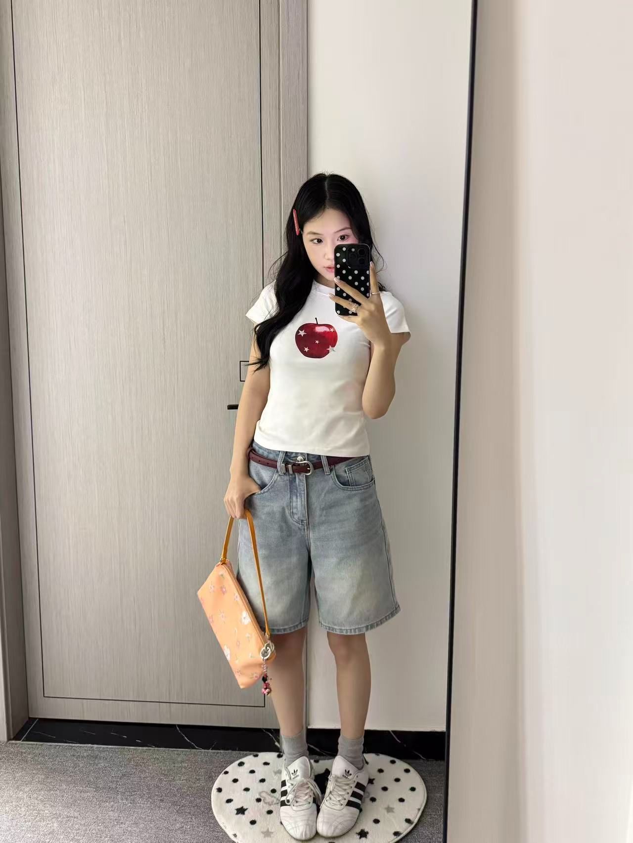 1 1 인 면 와 사고 방식 260g 빅 사이즈 여름 흔들다 칼라 반팔 티셔츠 여성 2026 새로운 주름 허리 수축 맨위