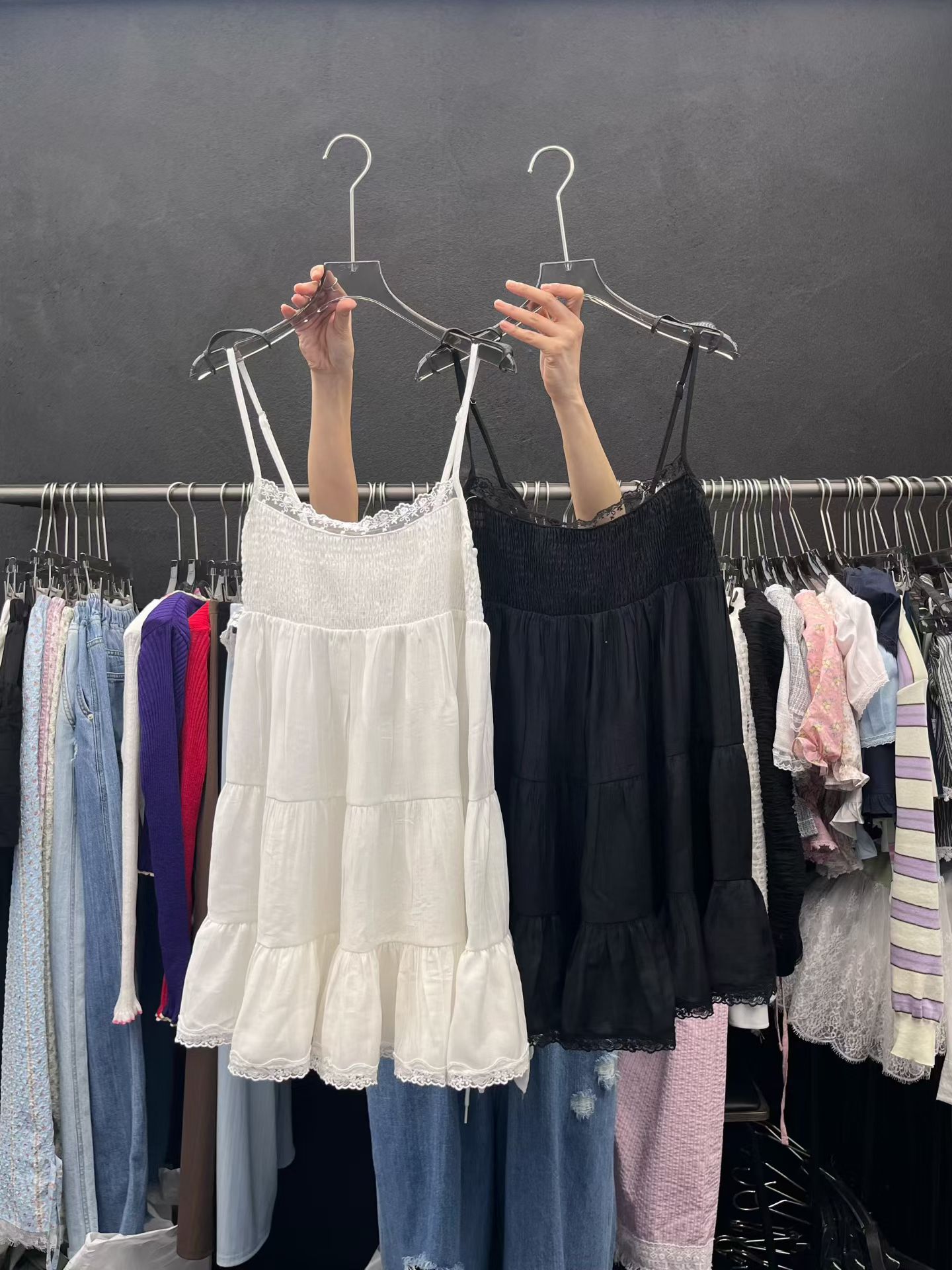 한국 ins 봄 여름 섹션 부드러운 레이스 조각 맨위 반신 치마 세트