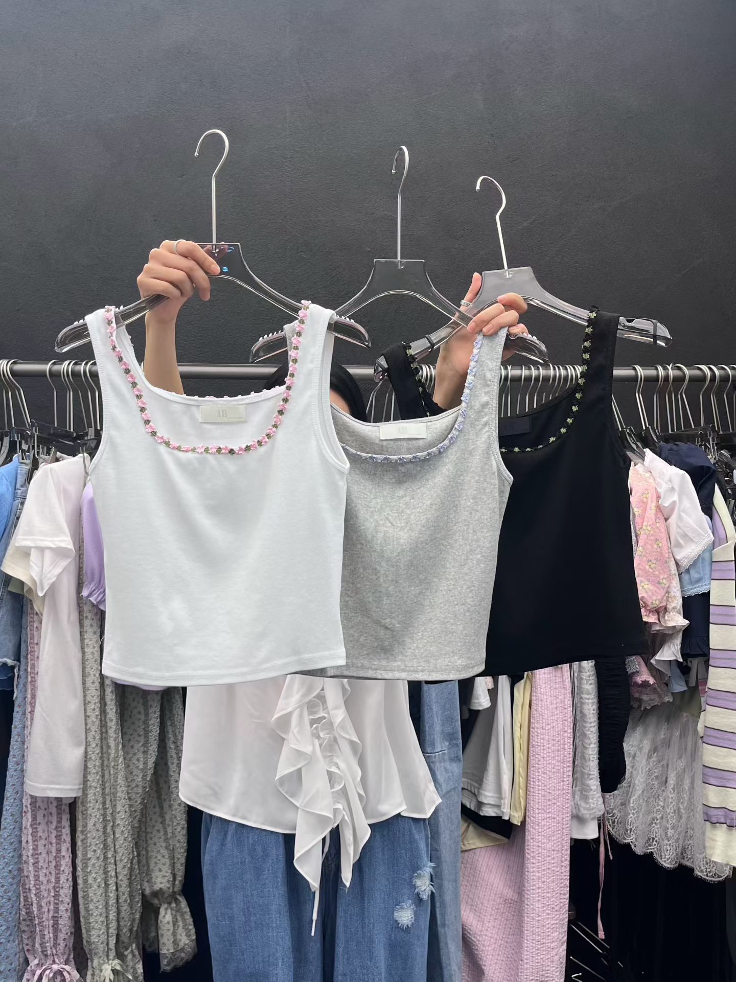 순수한 욕망 레이스 측면 싱글 줄 버튼 캐미솔 봄 2026 새로운 수 있습니다. 조정 어깨끈 인사이드 가져 가라. 쇼트 스타일 맨위