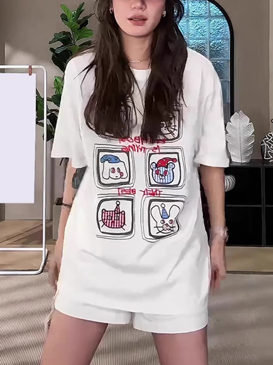 2026 한국 대외 무역 새로운 구매 여름 드레스 한 부서 반팔 티셔츠 여성 한국 스타일 루즈핏 빅 사이즈 프린트