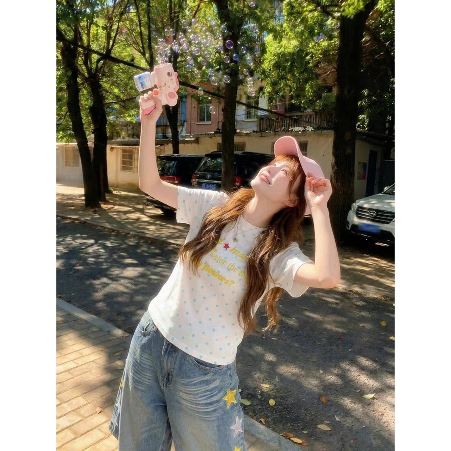 원본 원단 순수한 욕망 핫걸 디자인 센스 시스루 도트 무늬 티셔츠 여성 여름 망사 섹시함 루즈핏 맨위
