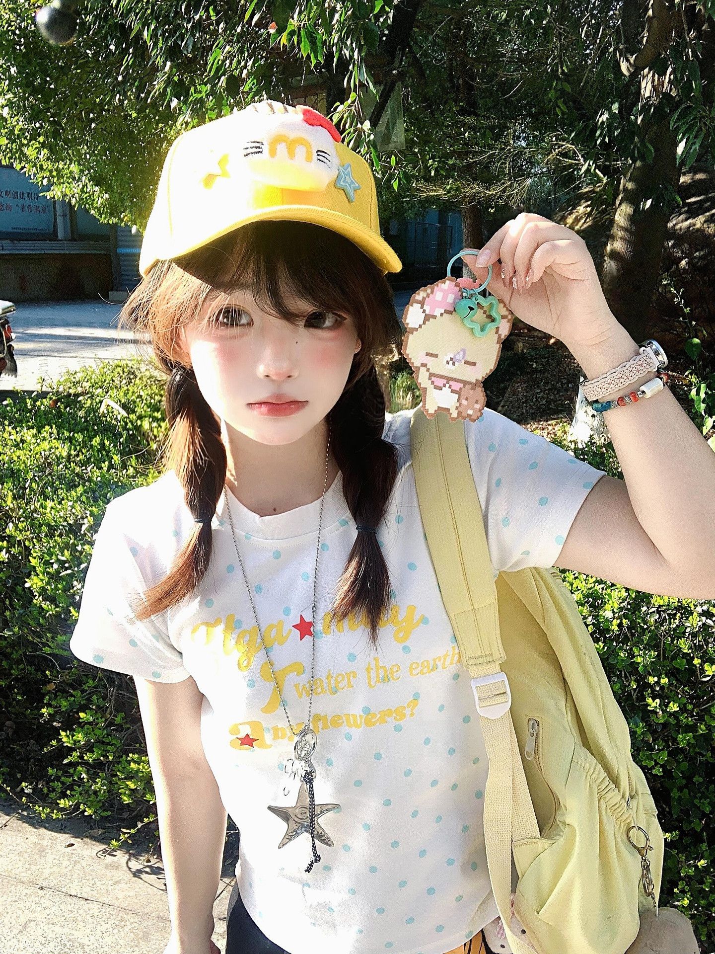원본 솜씨 오리 새끼 만화 자수 루즈핏 귀여운 POLO 셔츠 반팔 반바지 세트 여성 투피스 세트 여름