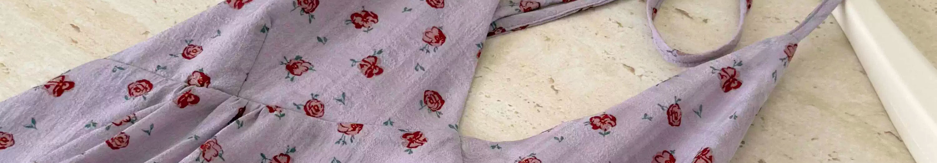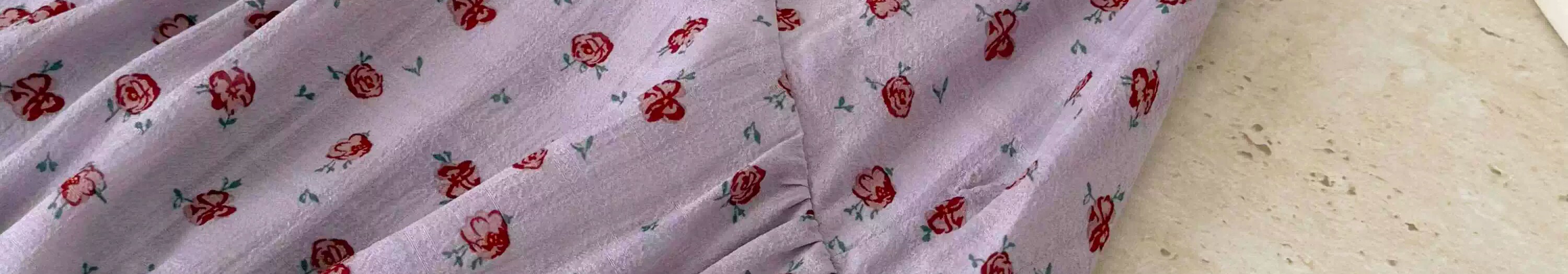 원본 원단 네리 보라색 행침 목 백리스 슬립 꽃무늬 중간 길이 맨위 여름 해변가 휴가