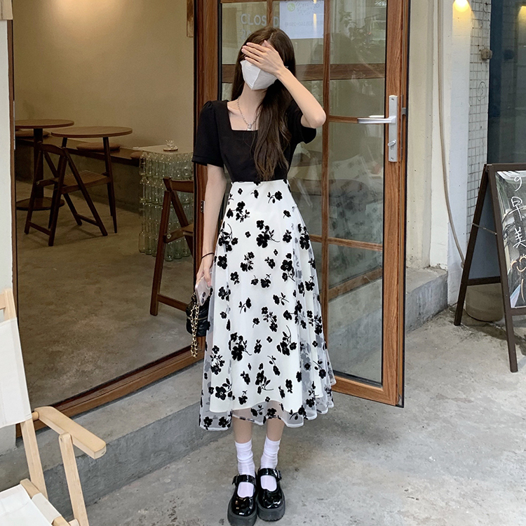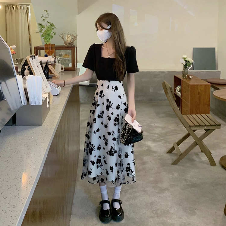 2026 여름 새로운 한 부서 달콤한 차가운 재미있는 프린트 반팔 티셔츠 루즈핏 느긋한 맨위 다용도 꽃무늬 반 스커트