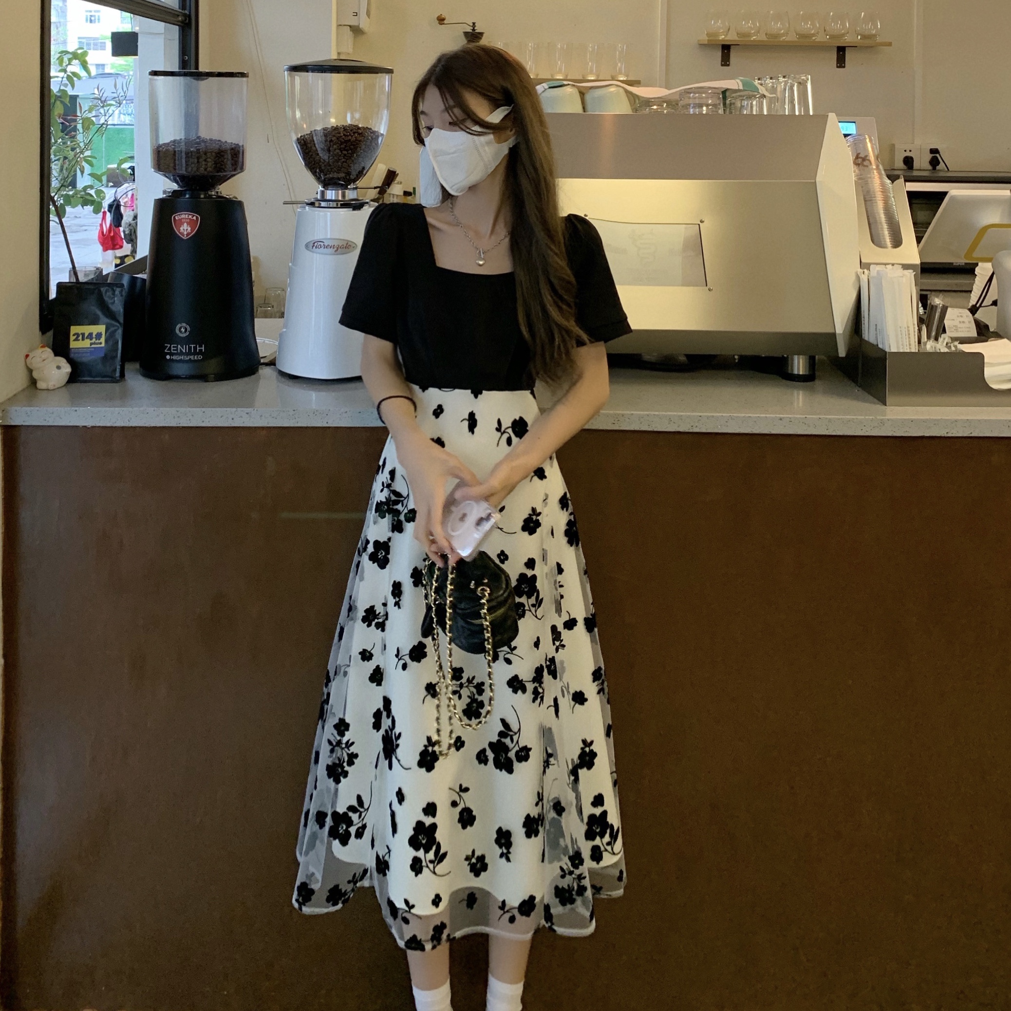 실사 여름 드레스 거품 소매 드레스 그는 벤 바람 프랑스식 고급 센스 디자인 센스 작은 대중 롱 스커트 m-4xl200 근