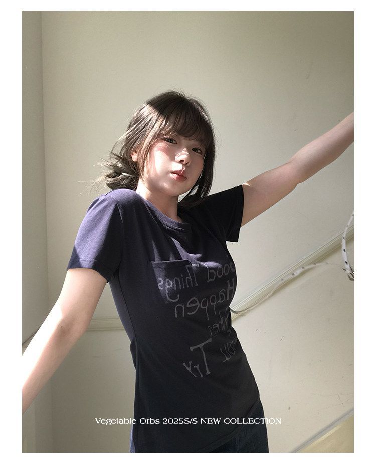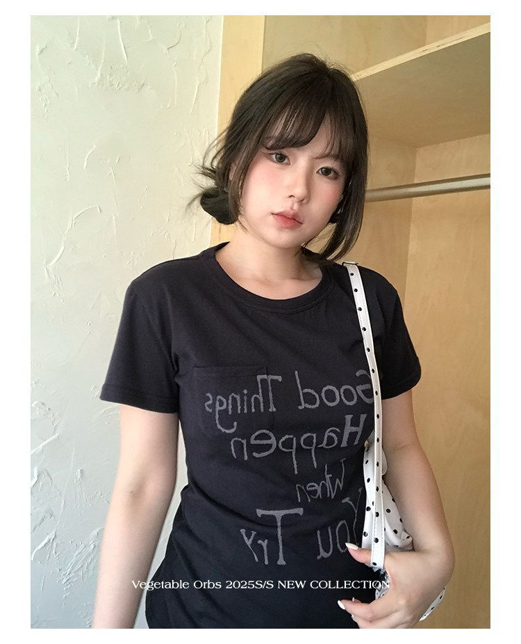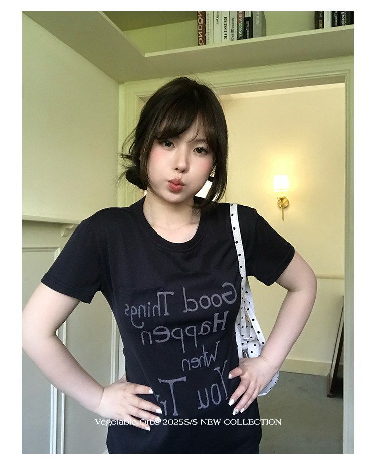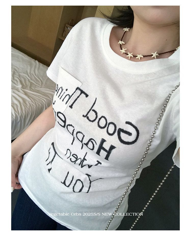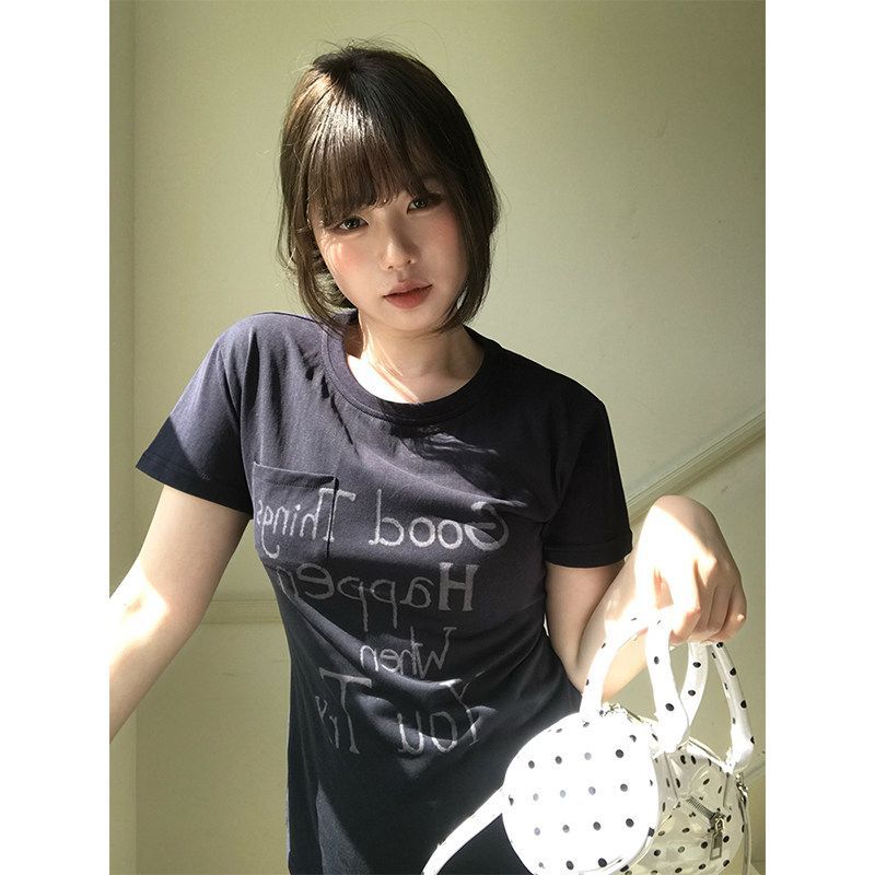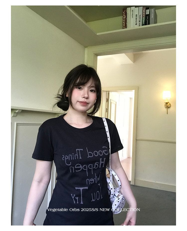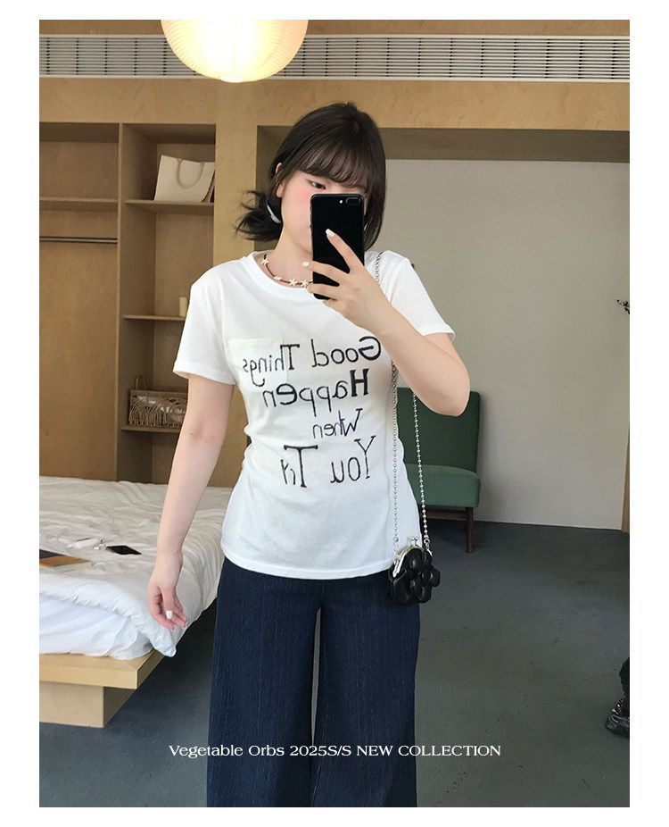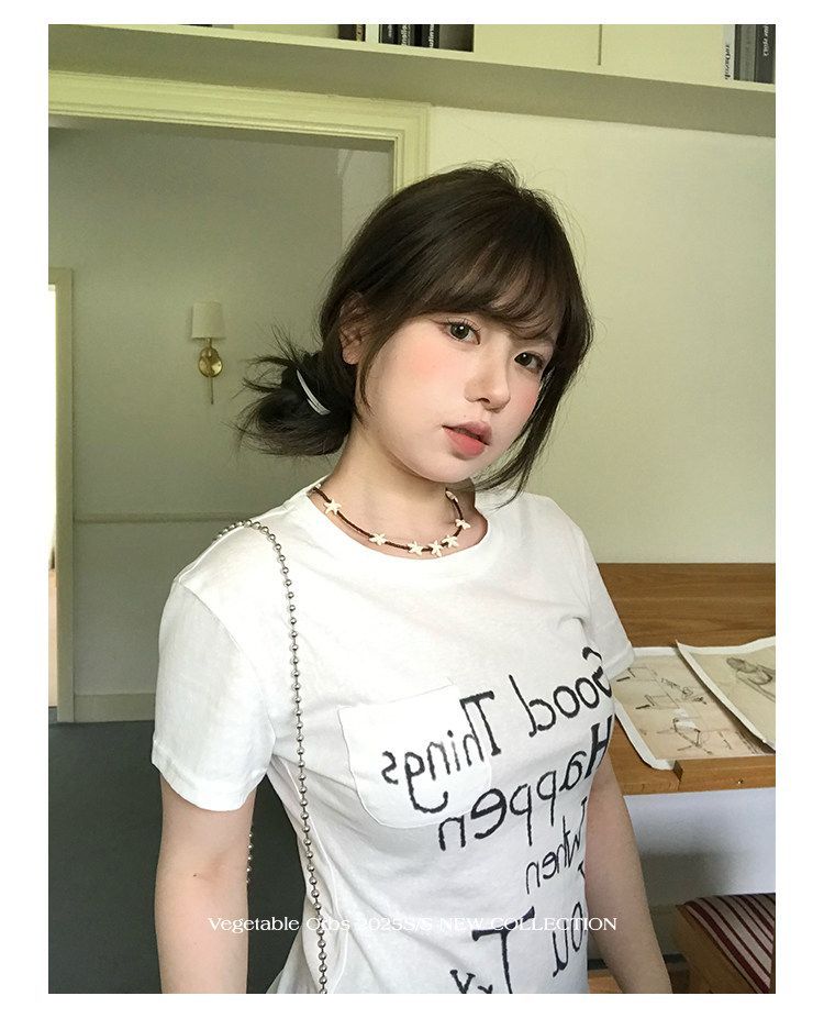 디자인 센스 허리 수축 슬림해 보이는 화이트 반팔 티셔츠 여성 인터넷 유명인 Chic 고유 한 프린트 긍정적 인 어깨 의류
