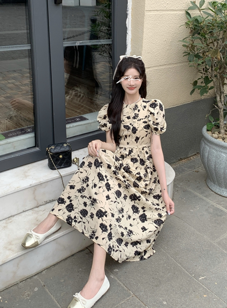 실사 여름 드레스 거품 소매 드레스 그는 벤 바람 프랑스식 고급 센스 디자인 센스 작은 대중 롱 스커트 m-4xl200 근