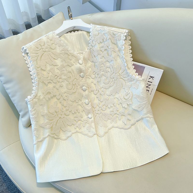 새로운 중식 미니멀리즘 자수 프랑스식 레이스 맨위 작은 키 패션 여자 우아함 품격 다용도 베스트 조끼