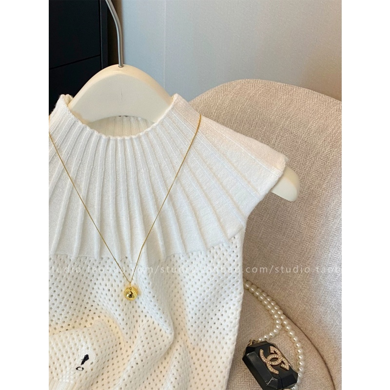 경관 그림 디자인 센스 하프 라운드 넥 칼라 홀로우 아웃 니트 스웨터 조끼 2026 여름 미니멀리즘 슬림해 보이는 얇은 스타일 다용도 맨위