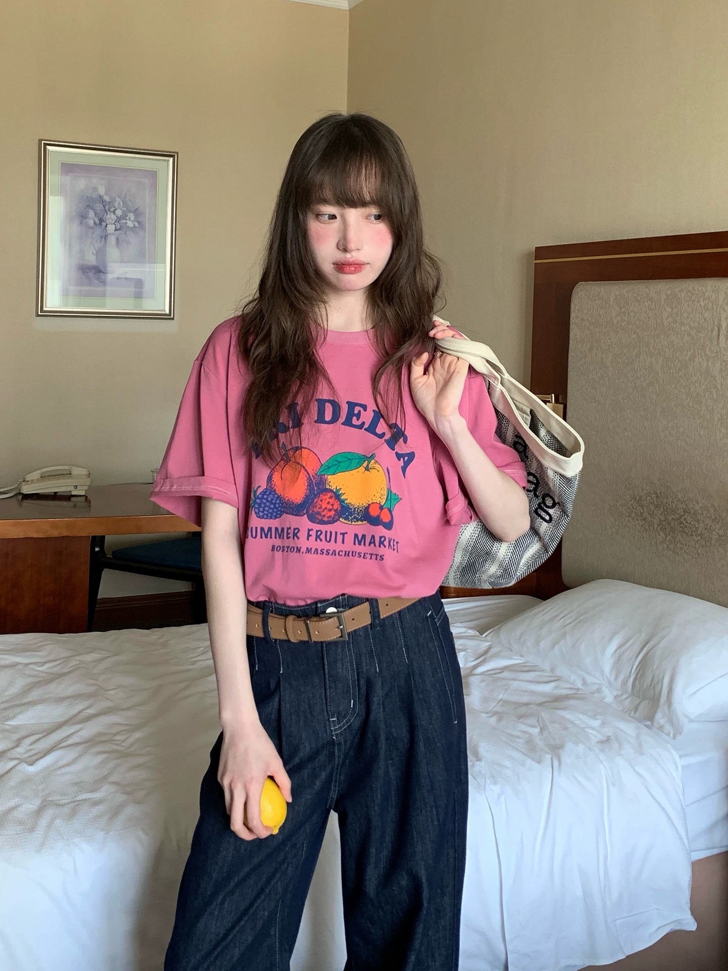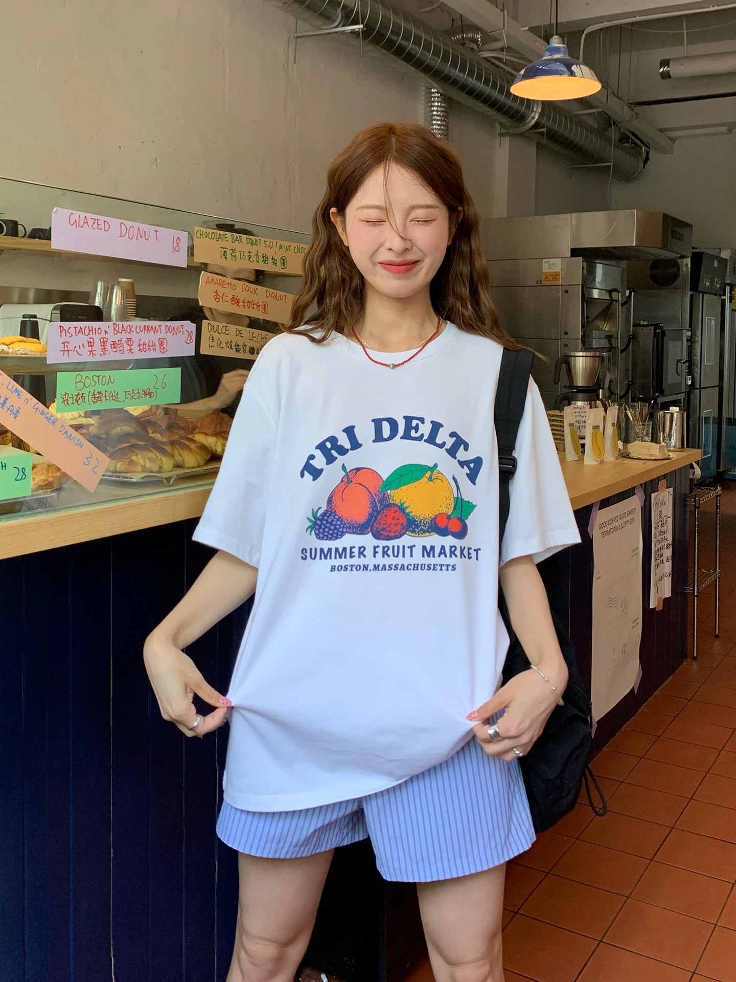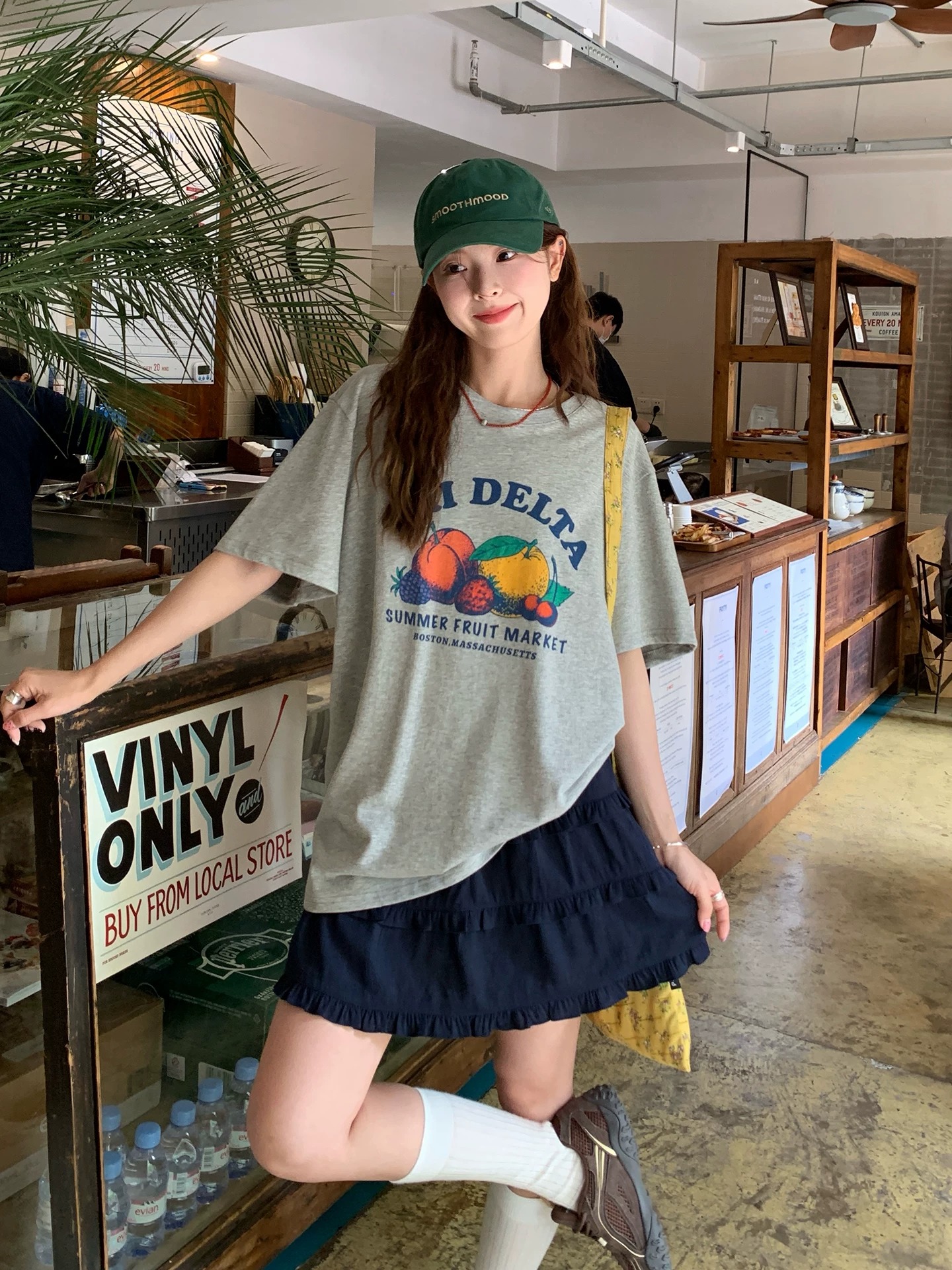 2026 한국 나 새로운 구매 여름 드레스 한 부서 반팔 티셔츠 여성 한국 스타일 루즈핏 빅 사이즈 프린트