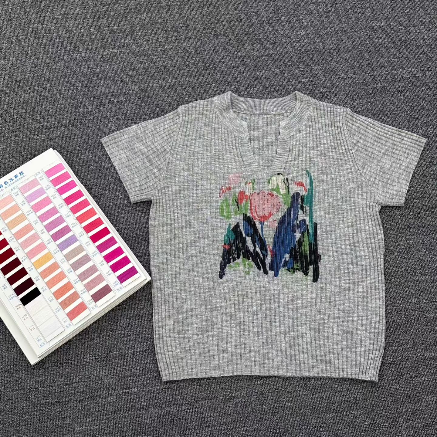 검정색 프린트 반팔 얇은 스타일 니트 티셔츠 여성 2026 봄 여름 새로운 고급 패션 잘 생긴 루즈핏 맨위