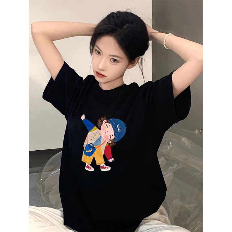 2026 한국 나 새로운 구매 여름 드레스 한 부서 반팔 티셔츠 여성 한국 스타일 루즈핏 빅 사이즈 프린트