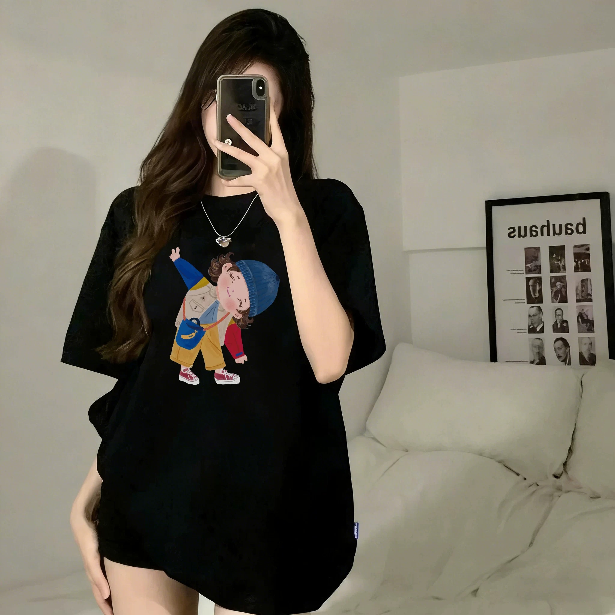 2026 한국 새로운 캐주얼 여름 드레스 한 부서 반팔 티셔츠 여성 한국 스타일 루즈핏 빅 사이즈 프린트