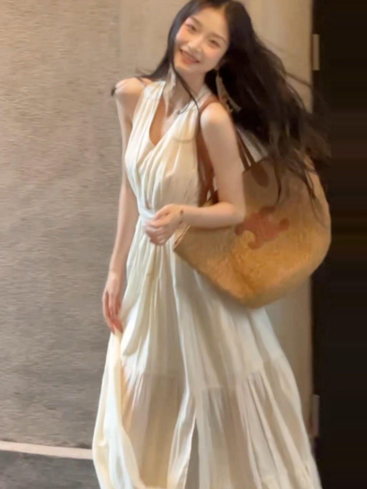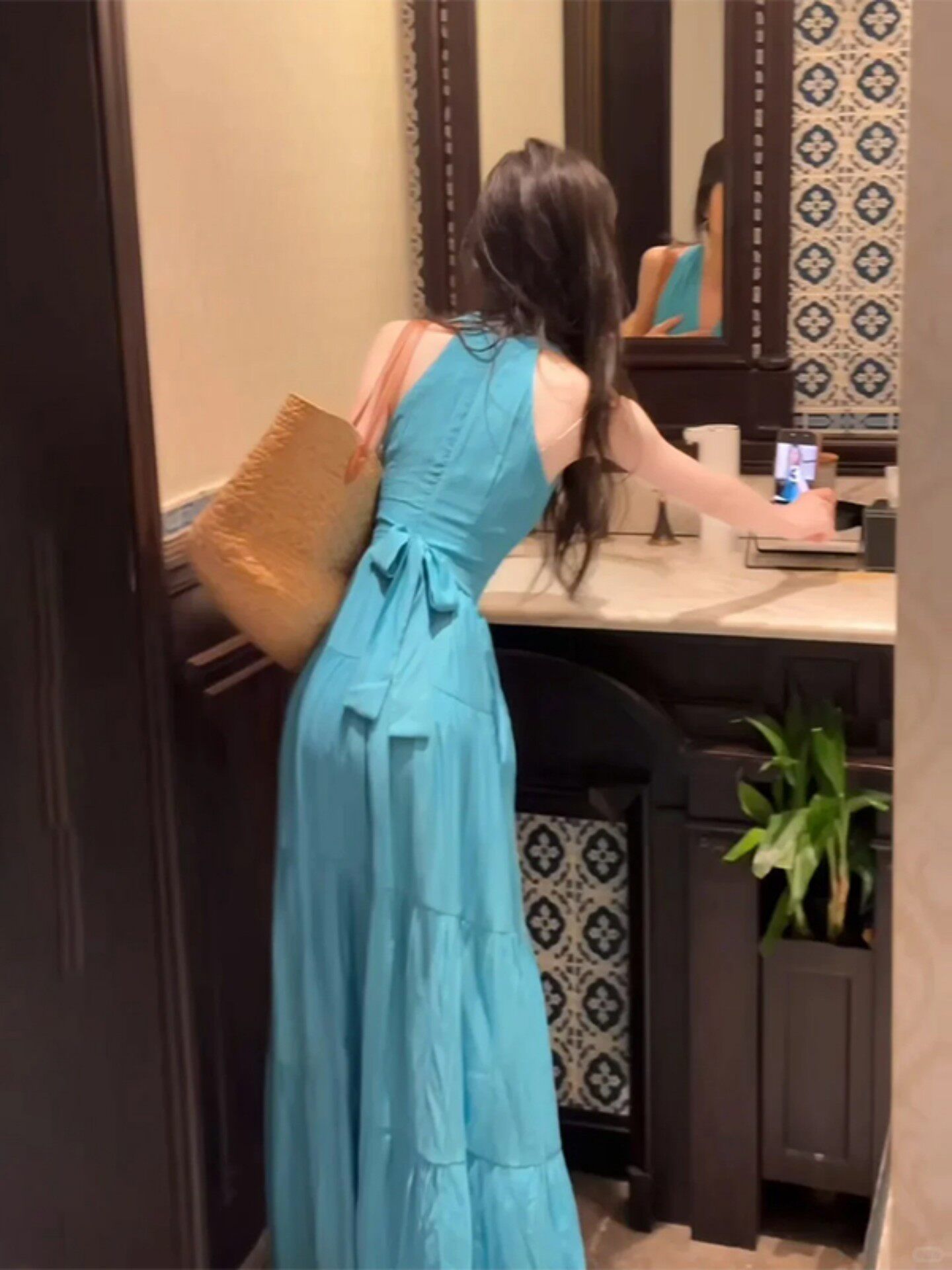 프랑스식 품격 빨간색 행침 목 슬립 여성 드레스 여름 2026 새로운 해변가 휴가 아름다운 아름다운 롱 스커트