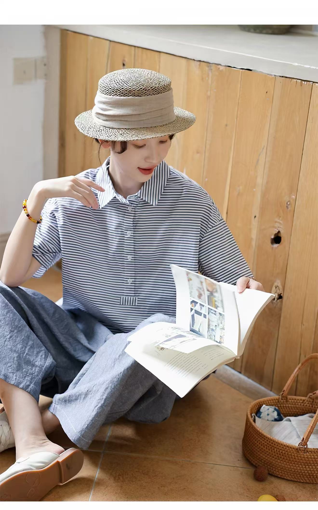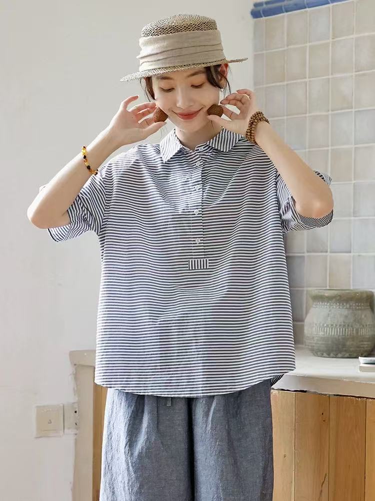고급 고급 빗질된 면 2026 여름 미니멀리즘 문예 스트라이프 품격 셔츠 루즈핏 통기성 다용도 맨위