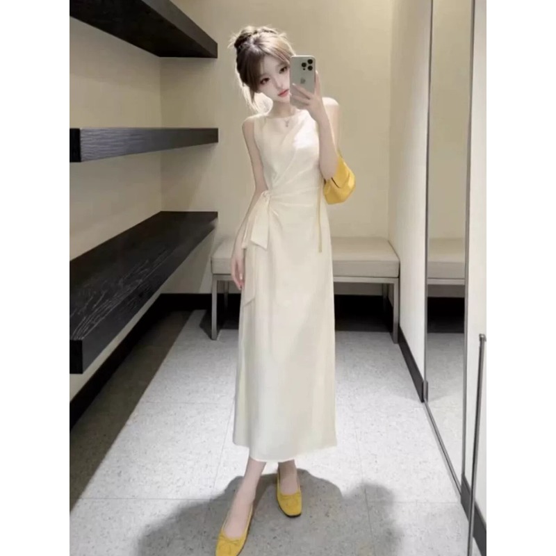 프랑스식 품격 화이트 숙녀 바람 민소매 드레스 2026 여름 새로운 관대 한 점잖은 허리 수축 롱 스커트 여성 의류