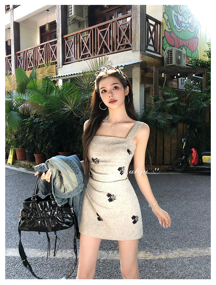 자이언트 잘 생긴 레트로 자수 프린트 슬립 드레스 아이들 여름 2026 새로운 이른 봄 아름다운 타이트 스커트 미니 스커트