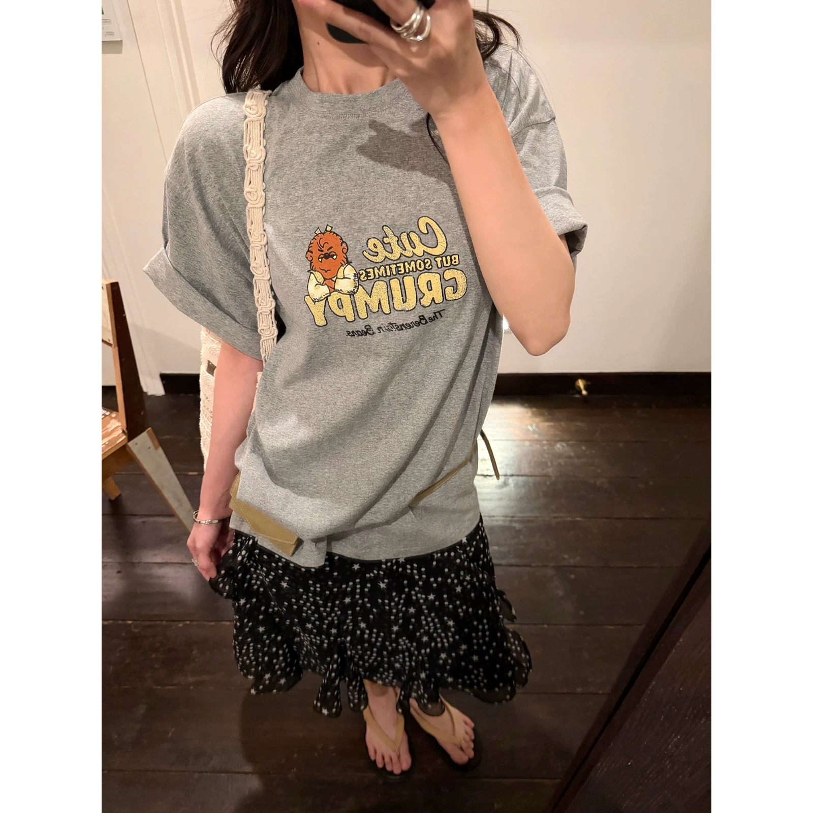 2026 한국 새로운 캐주얼 여름 드레스 한 부서 반팔 티셔츠 여성 한국 스타일 루즈핏 빅 사이즈 프린트