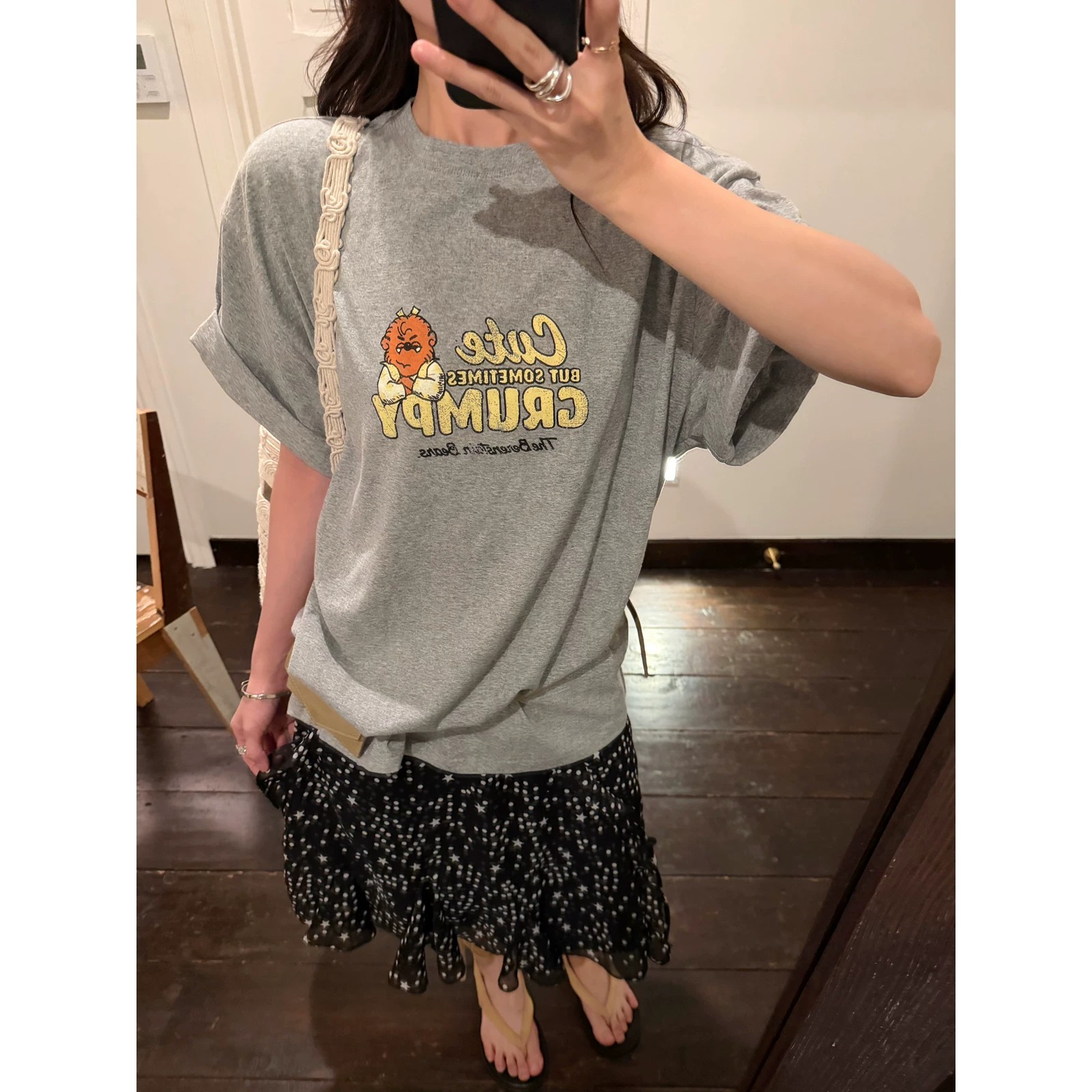 2026 한국 나 새로운 구매 여름 드레스 한 부서 반팔 티셔츠 여성 한국 스타일 루즈핏 빅 사이즈 프린트