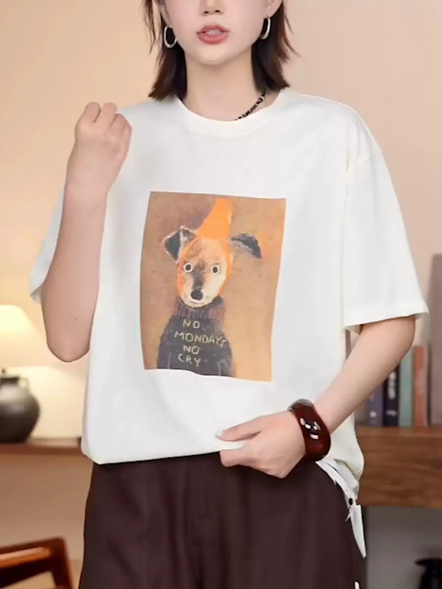 2026 한국 나 새로운 구매 여름 드레스 한 부서 반팔 티셔츠 여성 한국 스타일 루즈핏 빅 사이즈 프린트