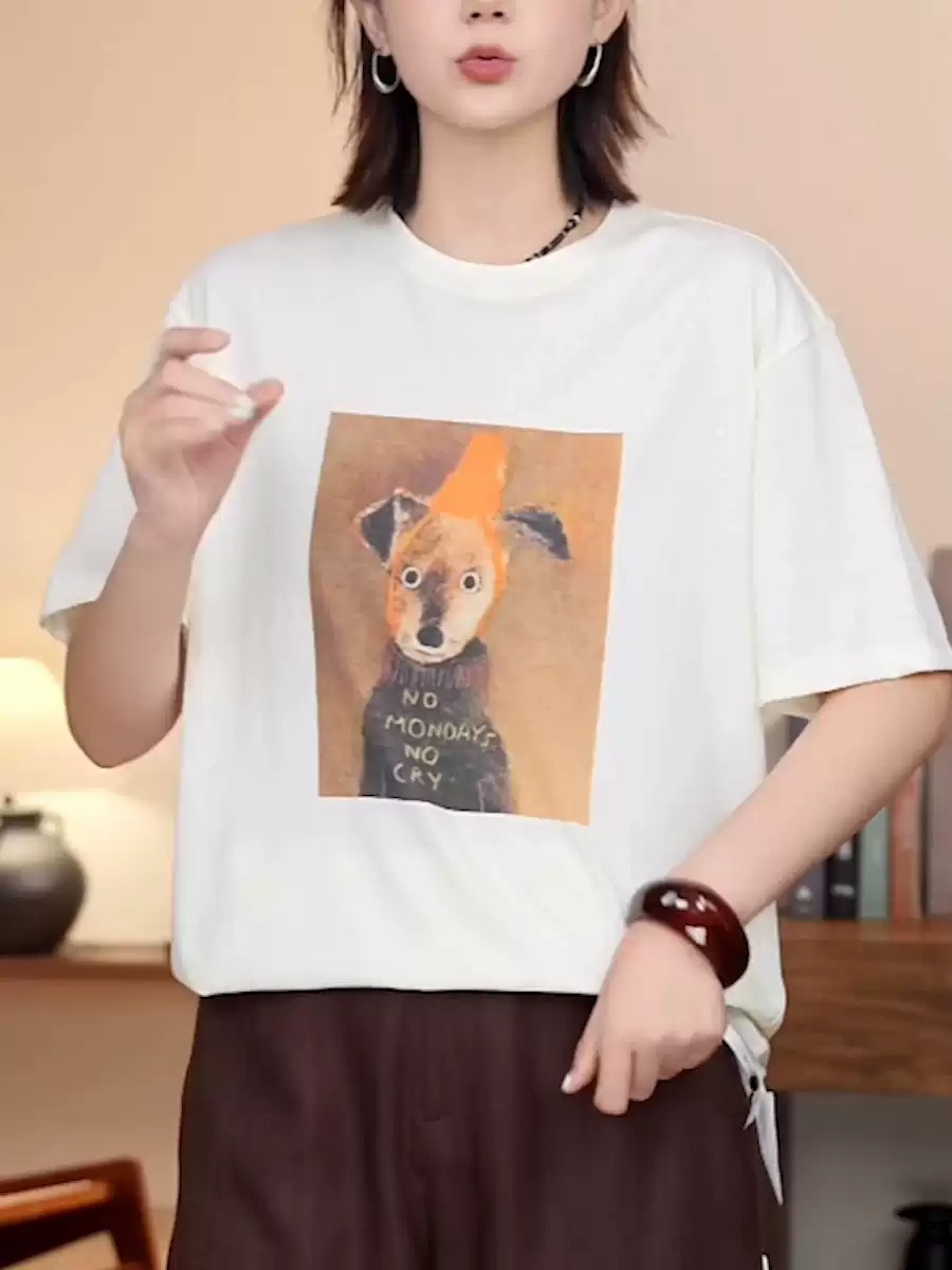 2026 한국 대외 무역 새로운 구매 캐주얼 여름 드레스 한 부서 반팔 티셔츠 여성 한국 스타일 루즈핏 빅 사이즈 프린트