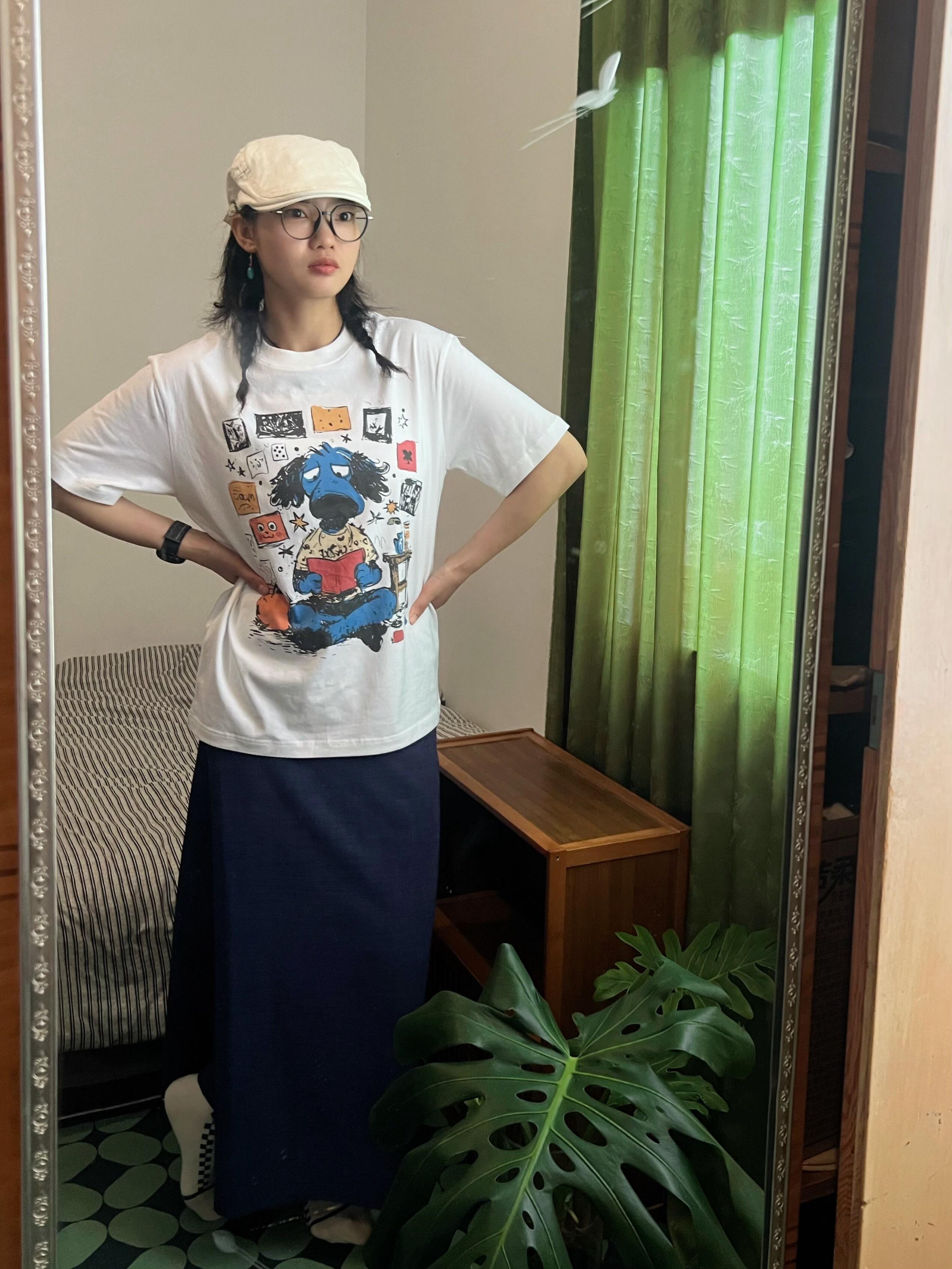 순면 이후 패키지 칼라 bm 조수 브랜드 인터넷 유명인 한국 스타일 하라주쿠 와이드 바람 소나무 맨위 캐주얼 프린트 연령 감소 반팔 티셔츠 여성