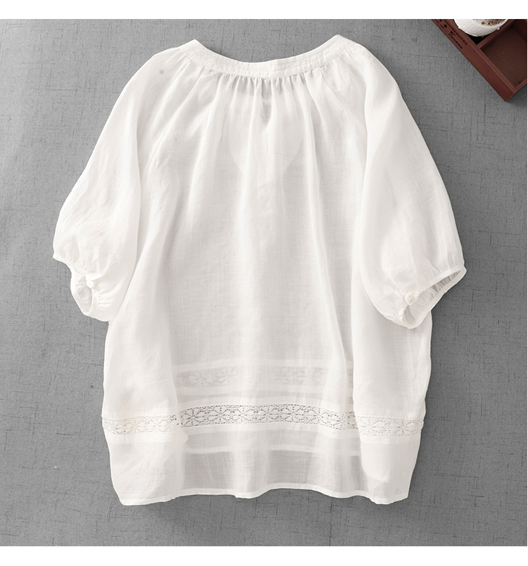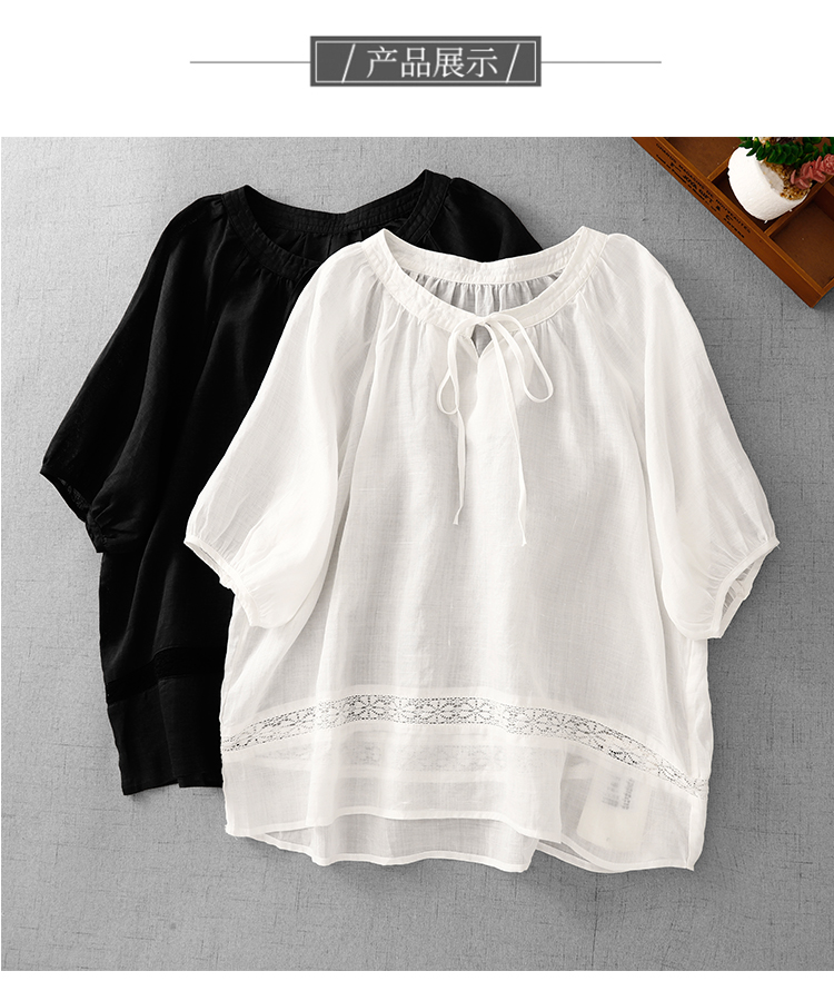 3678 여름 새로운 2026 패션 패치워크 단색 스트랩 여성 셔츠 루즈핏 빅 사이즈 홀로우 아웃 5 점 소매 맨위