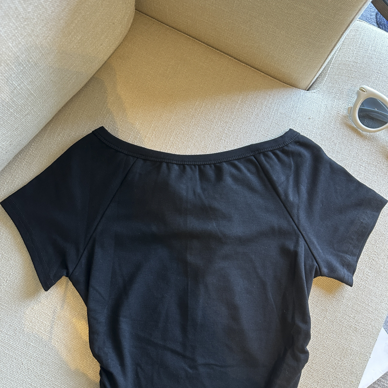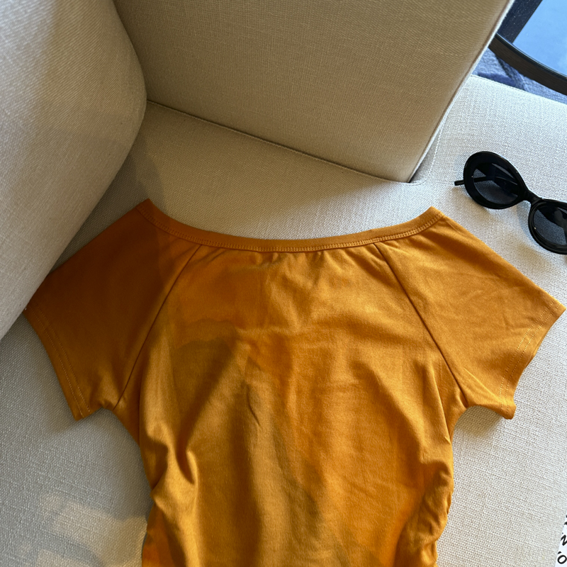 실사 하트 핫픽스 u 칼라 반팔 티셔츠 여성 2026 여름 디자인 센스 작은 키 핫걸 쇼트 스타일 맨위