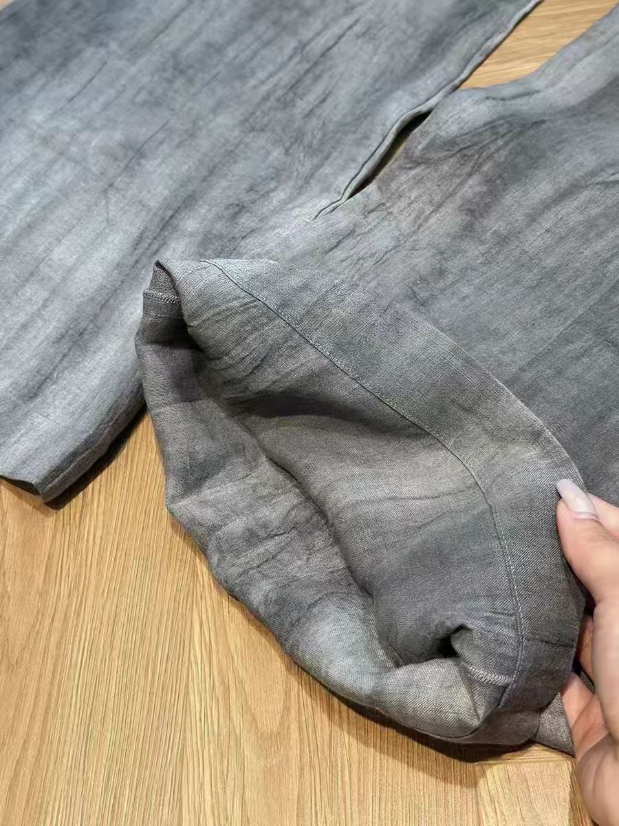 카운터 빼다 올해 인기 ~ 중 회색 하이웨이스트 아마 캐주얼 와이드 레그 팬츠 아이들 여름 얇은 스타일 고유 한 슈퍼 잘 생긴