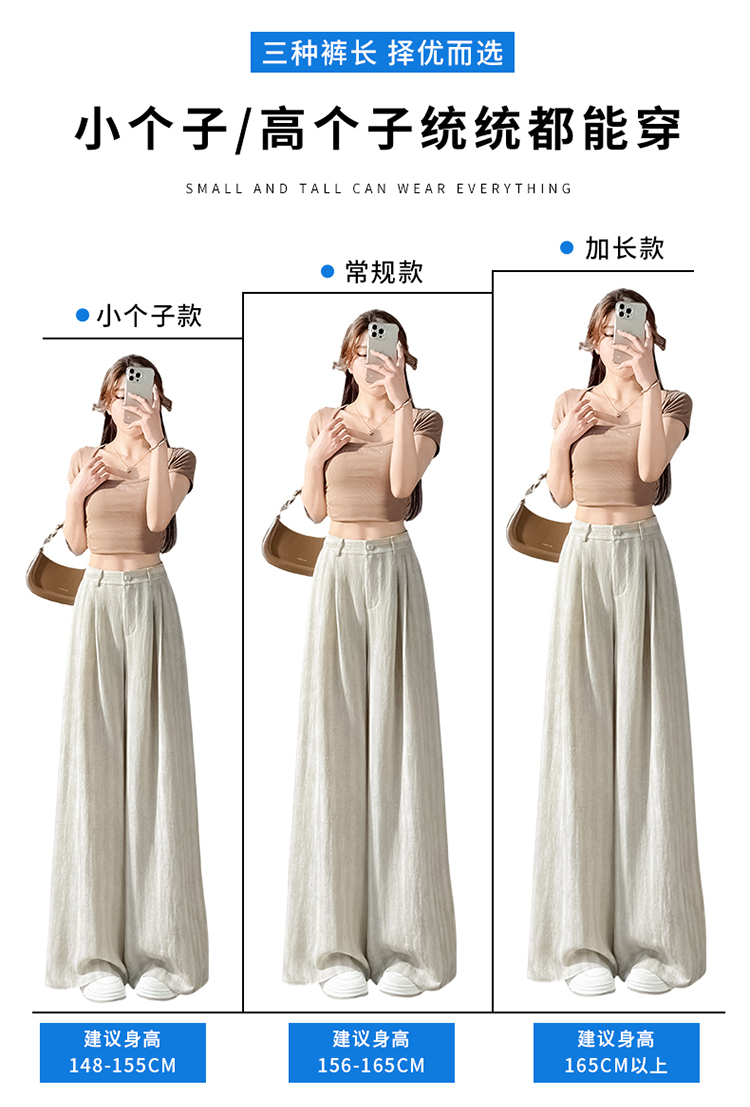 실사 2026 여름 새로운 얼음 실크 정장 바지 하이웨이스트 좁은 에디션 와이드 레그 팬츠 스트레이트 얇은 스타일 캐주얼 바닥 청소 바지 여성