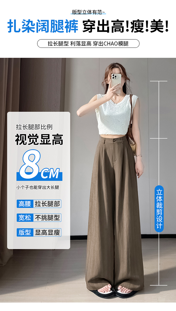 실사 2026 여름 새로운 홀치기 염색 아마 와이드 레그 팬츠 얼음 실크 바지 스트레이트 캐주얼 자외선 차단 바닥 청소 바지 여성