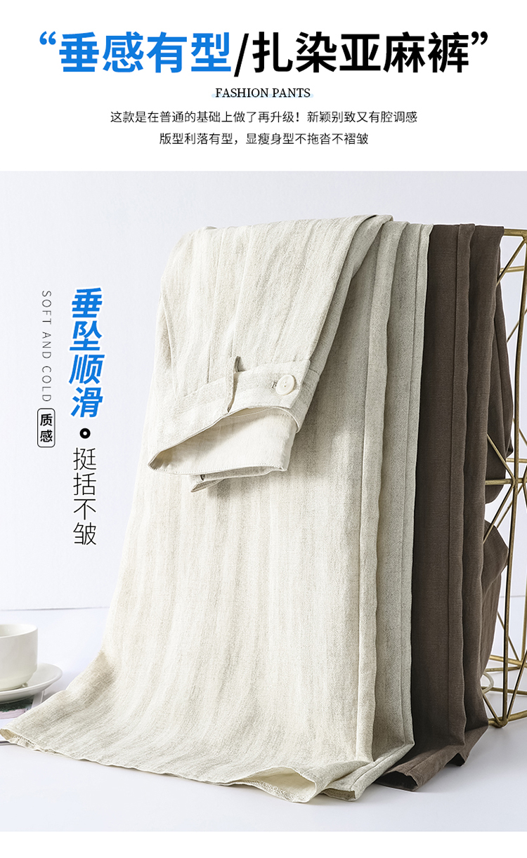 실사 2026 여름 새로운 홀치기 염색 주간 실크 아마 와이드 레그 팬츠 하이웨이스트 루즈핏 면 린넨 바닥 청소 바지 여성