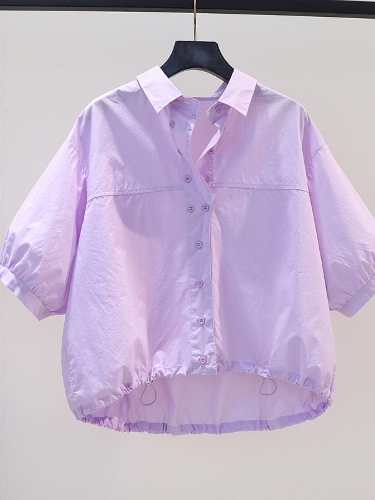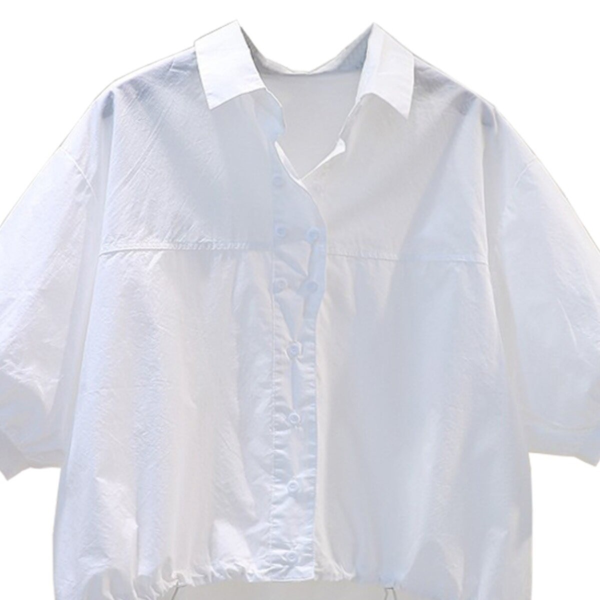 5 점 소매 디자인 센스 여성 셔츠 벌룬 소매 셔츠 밑단 펌프 로프 루즈핏 중간 소매 쇼트 스타일 맨위