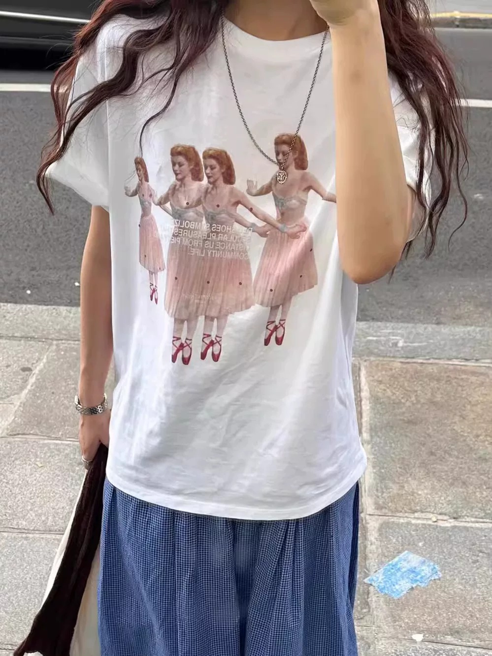 경관 그림 21 순면 210 그램 여름 드레스 한 부서 반팔 티셔츠 여성 한국 스타일 루즈핏 빅 사이즈 프린트