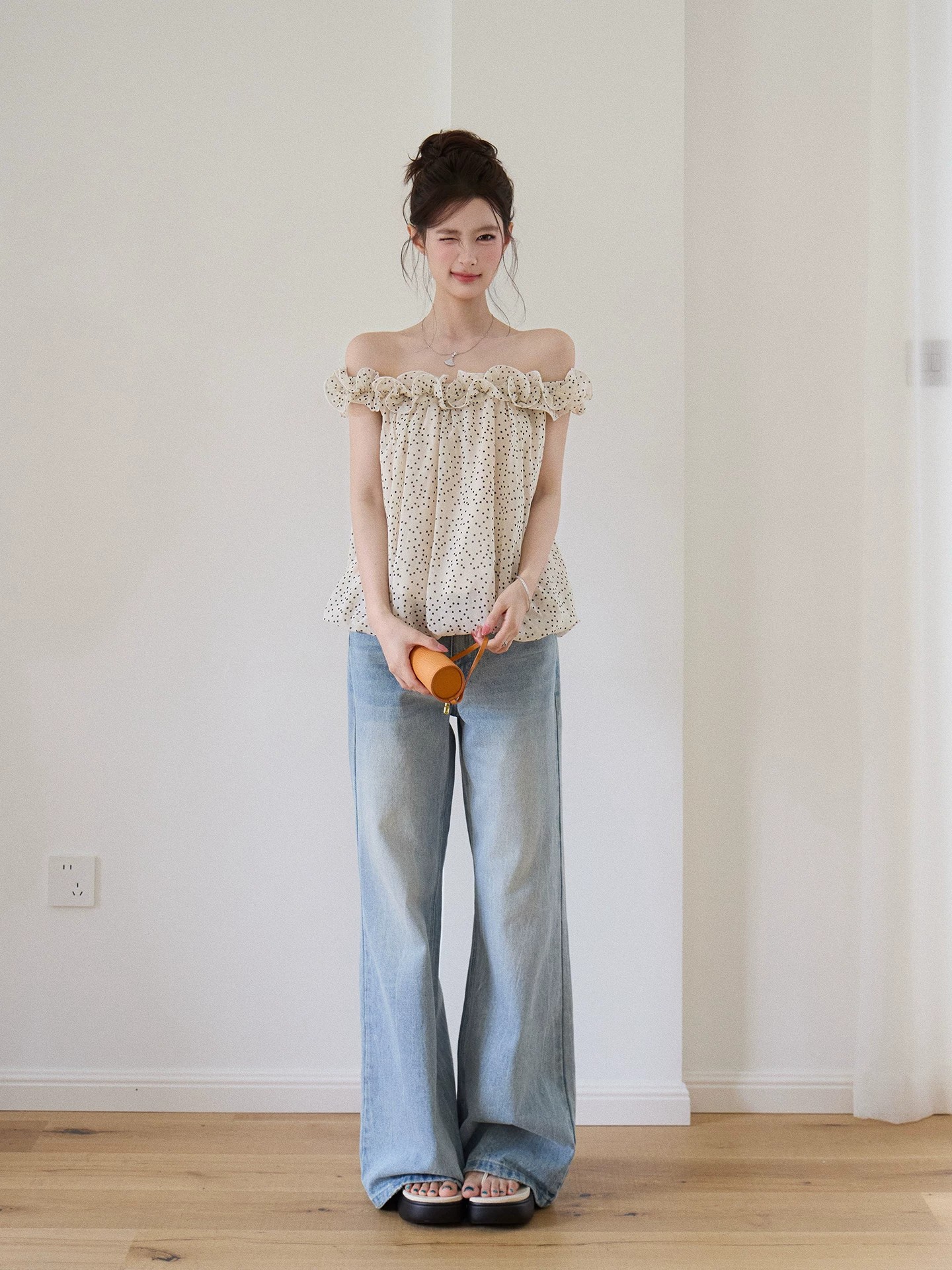 jaajaaa 치자 나무 꽃 청 비 도시 느슨함 센스 패션 방귀 커튼 풍선 바지 다용도 캐주얼 공기 바지 bbfi