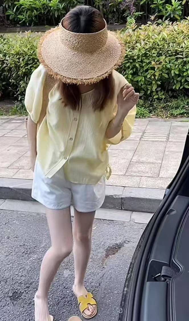 한 부서 루즈핏 얇은 스타일 단색 반팔 여성 셔츠 여름 디자인 센스 펌프 로프 쇼트 스타일 맨위 고유 한 아름다운 작은 셔츠