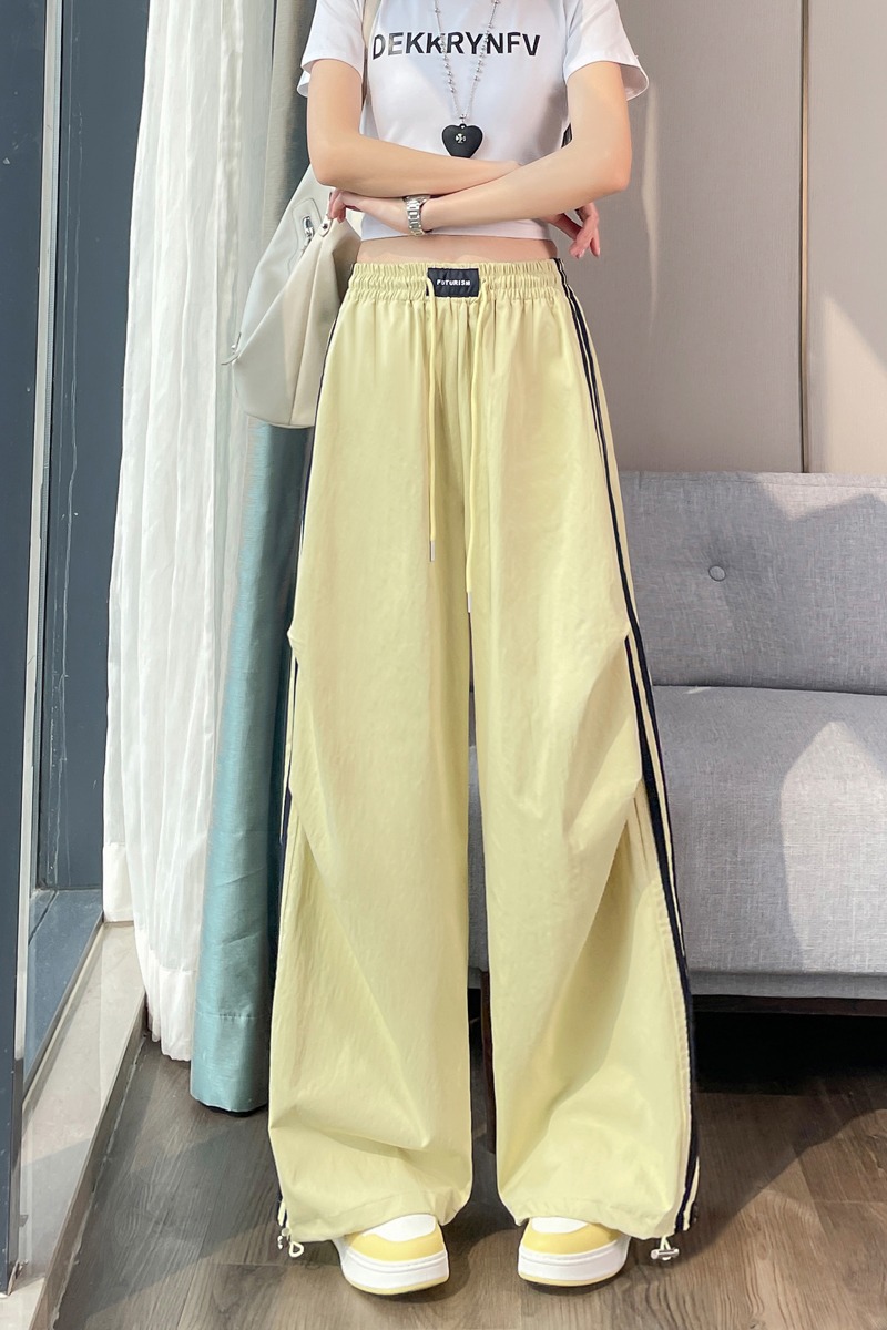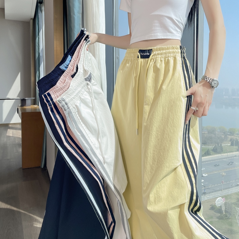 실사 2026 여름 새로운 속도 건조한 바지 워크웨어 팬츠 여성 얇은 스타일 하이웨이스트 조거 넓은 다리 둘 착용 할란 운동 바지