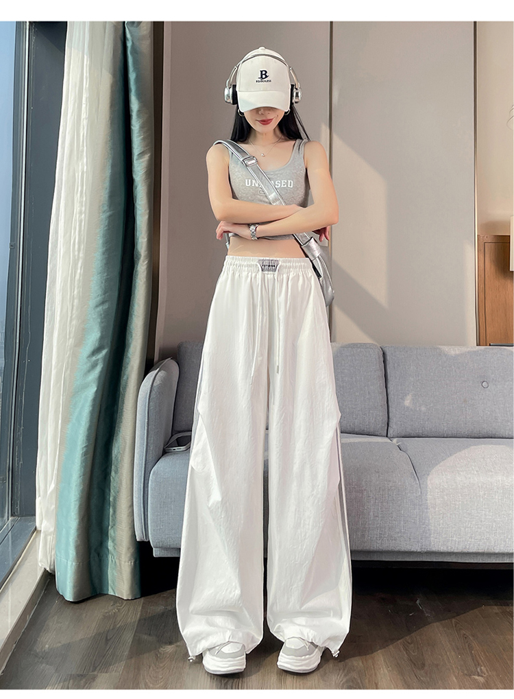 실사 2026 여름 새로운 얼음 실크 속도 건조한 아메리칸 워크웨어 팬츠 여성 얇은 스타일 조거 넓은 다리 캐주얼 바지 운동 바지