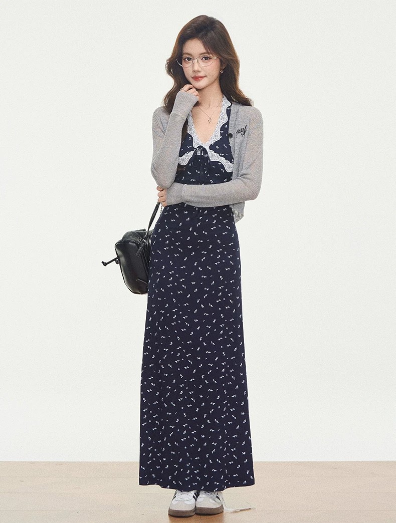 미니멀리즘 품격 숙녀 슬립 쉬폰 몸매 가꾸기 슬림해 보이는 롱 스커트 여성 일상 야외 사진 찍기 요정 휴가 드레스