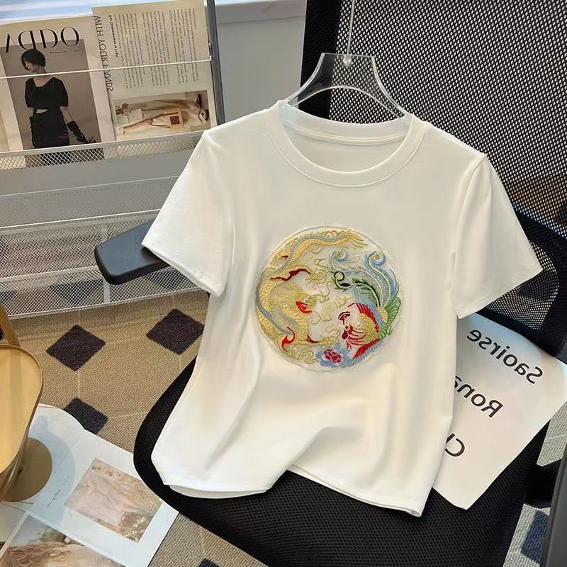 40 순면 210 그램 92 면 8 암모니아 Lun 반팔 티셔츠 여성 패치 자수
