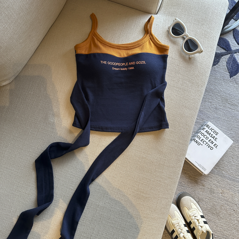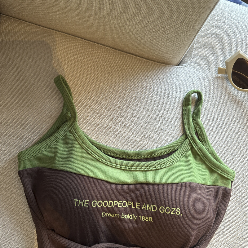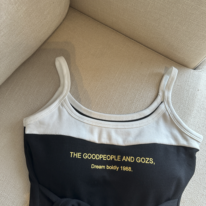 실사 핫걸 알파벳 프린트 캐미솔 여름 외출용 벨트 가슴 패드 행침 목 몸매 가꾸기 아름다움 뒤쪽에 의류