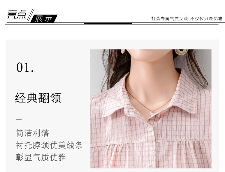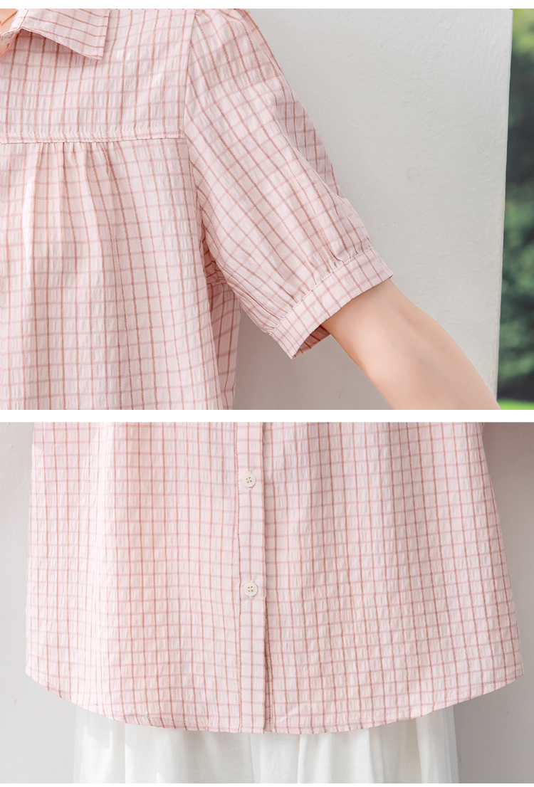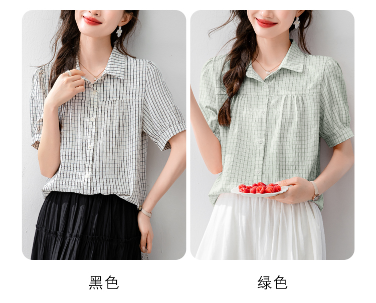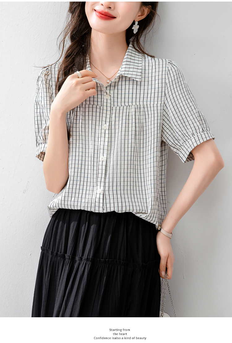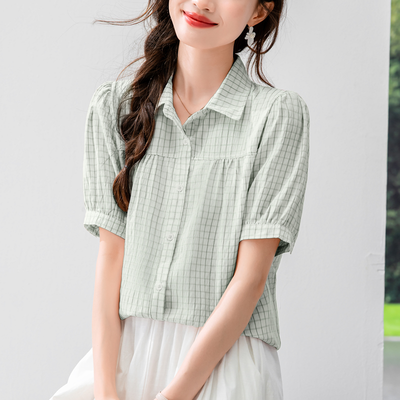 실사 패션 미니멀리즘 작은 폴로 칼라 벌룬 소매 모방 마 프린트 여성 셔츠 여름 루즈핏 연령 감소 슬림해 보이는 맨위
