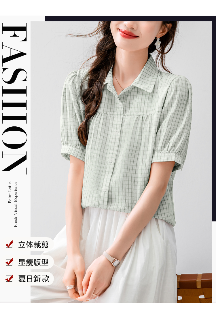 2026 실사 패션 미니멀리즘 작은 폴로 칼라 벌룬 소매 여성 셔츠 여름 루즈핏 연령 감소 슬림해 보이는 맨위