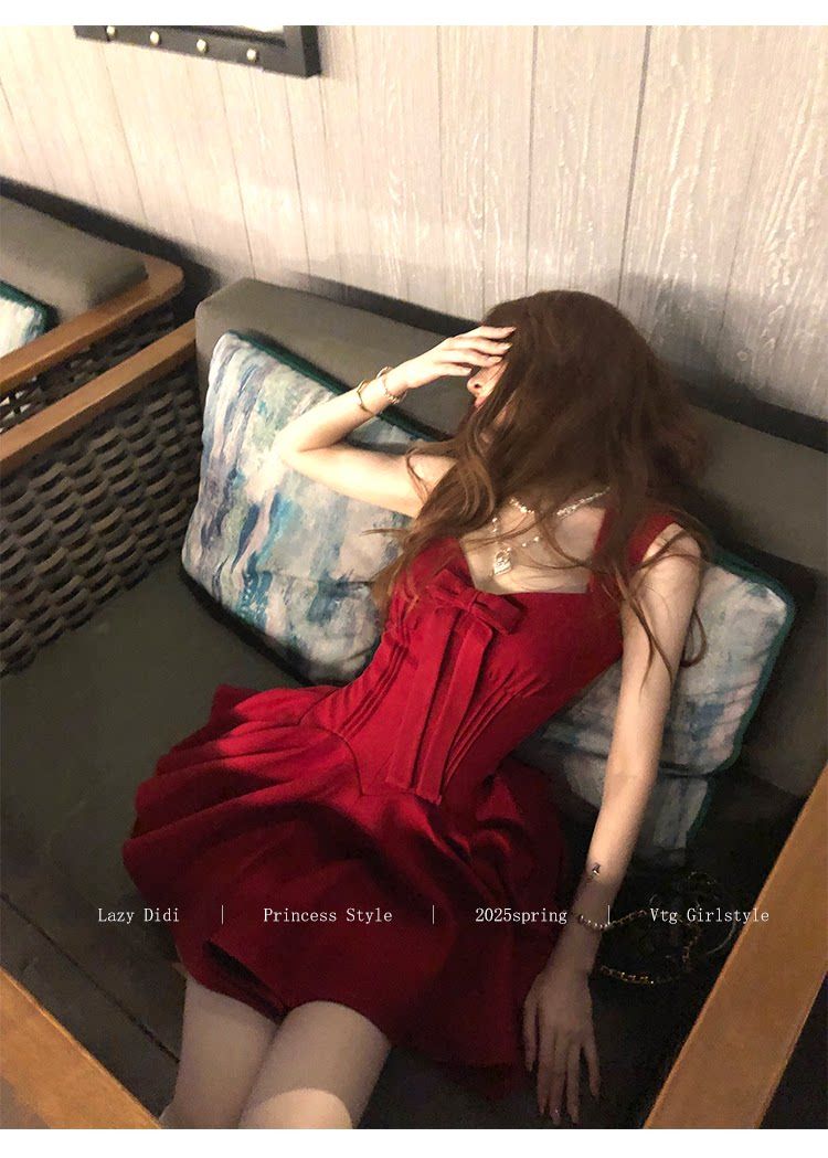 장미 인생 핫걸 순수한 욕망 바람 공주 드레스 나비 매듭 천 골드 센스 허리 수축 슬림해 보이는 생일 예복 여성 드레스