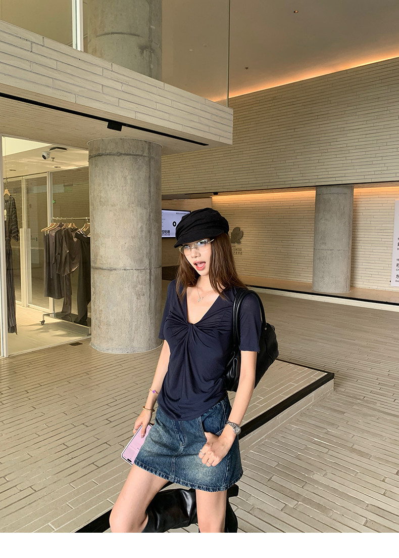 라이 경기 서울 비틀림 디자인 센스 긍정적 인 어깨 반팔 티셔츠 여성 여름 십자가 한 부서 핫걸 품격 허리 수축 작은 맨위