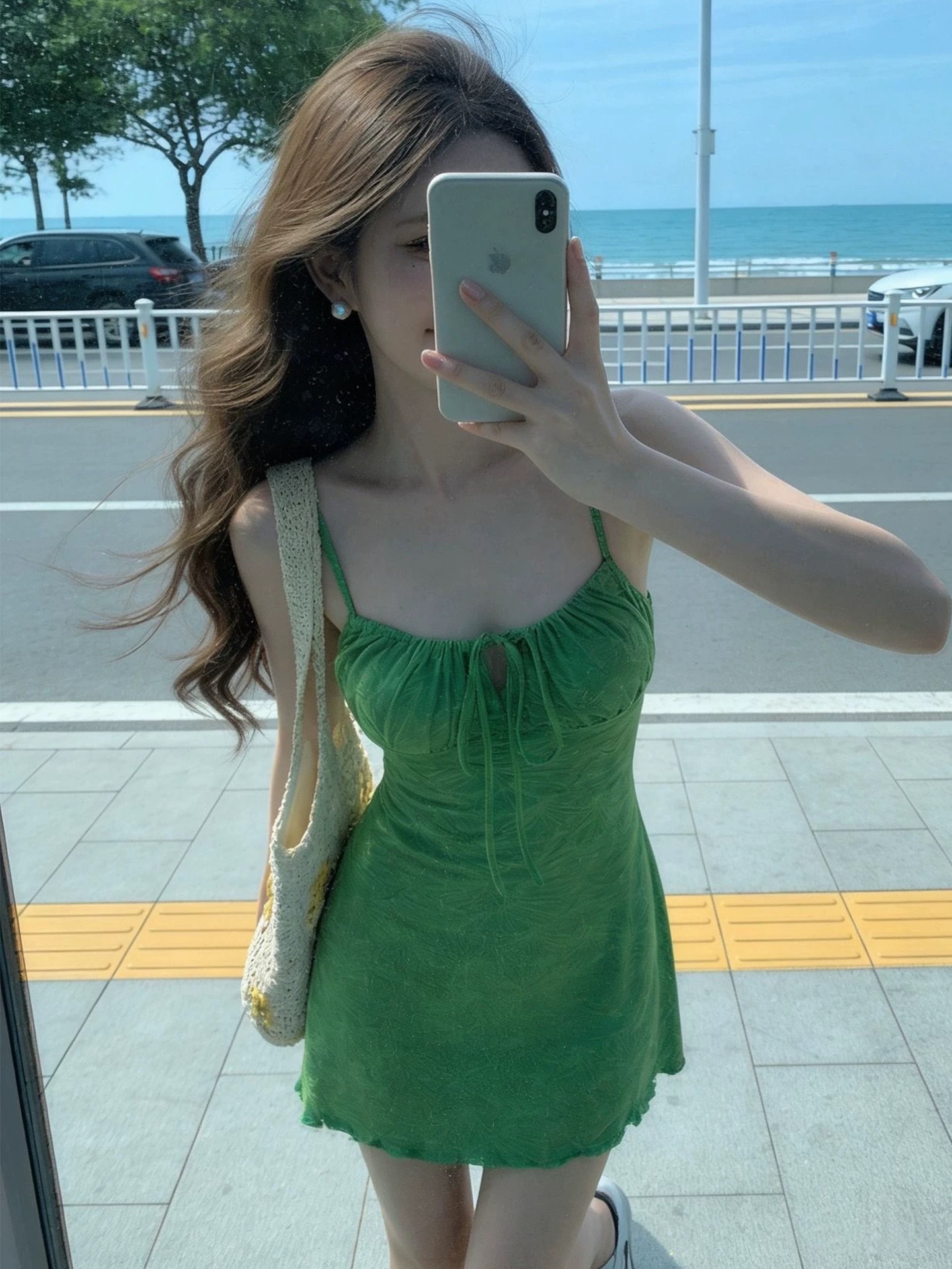 녹색 슬립 여성 드레스 봄 여름 착용 가져 가라. 2026 새로운 해변가 휴가 질감 센스 튜브탑 한 마디 짧은 치마