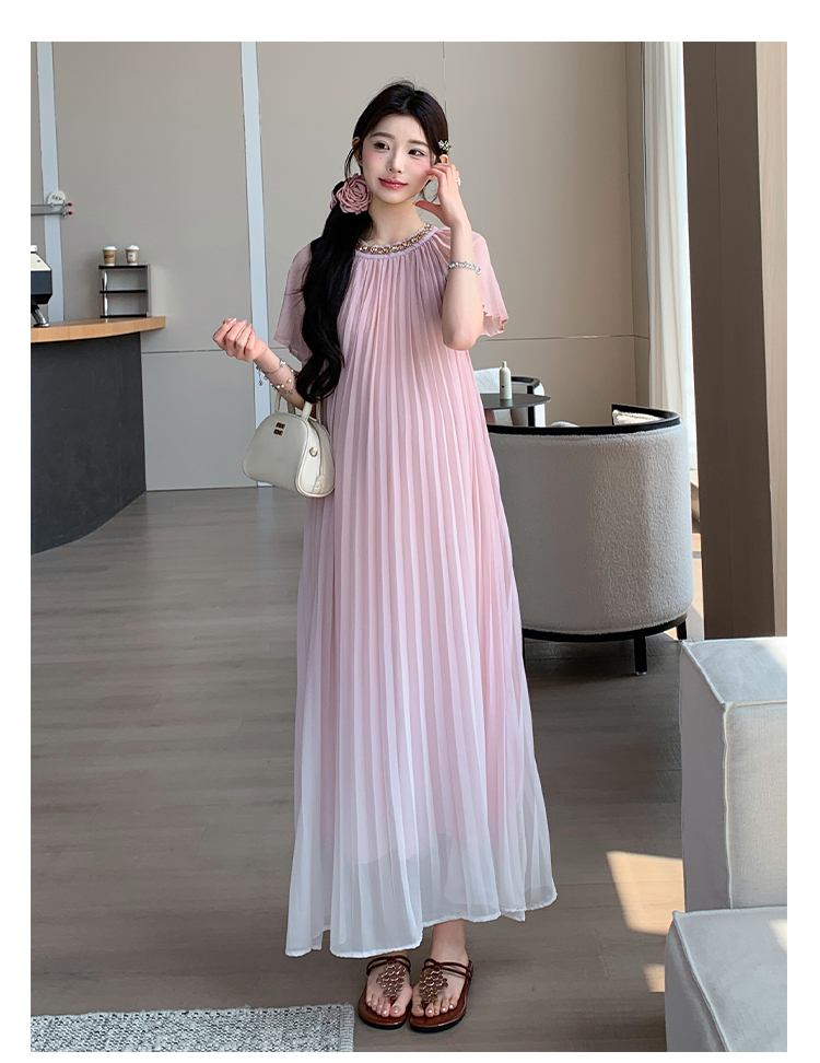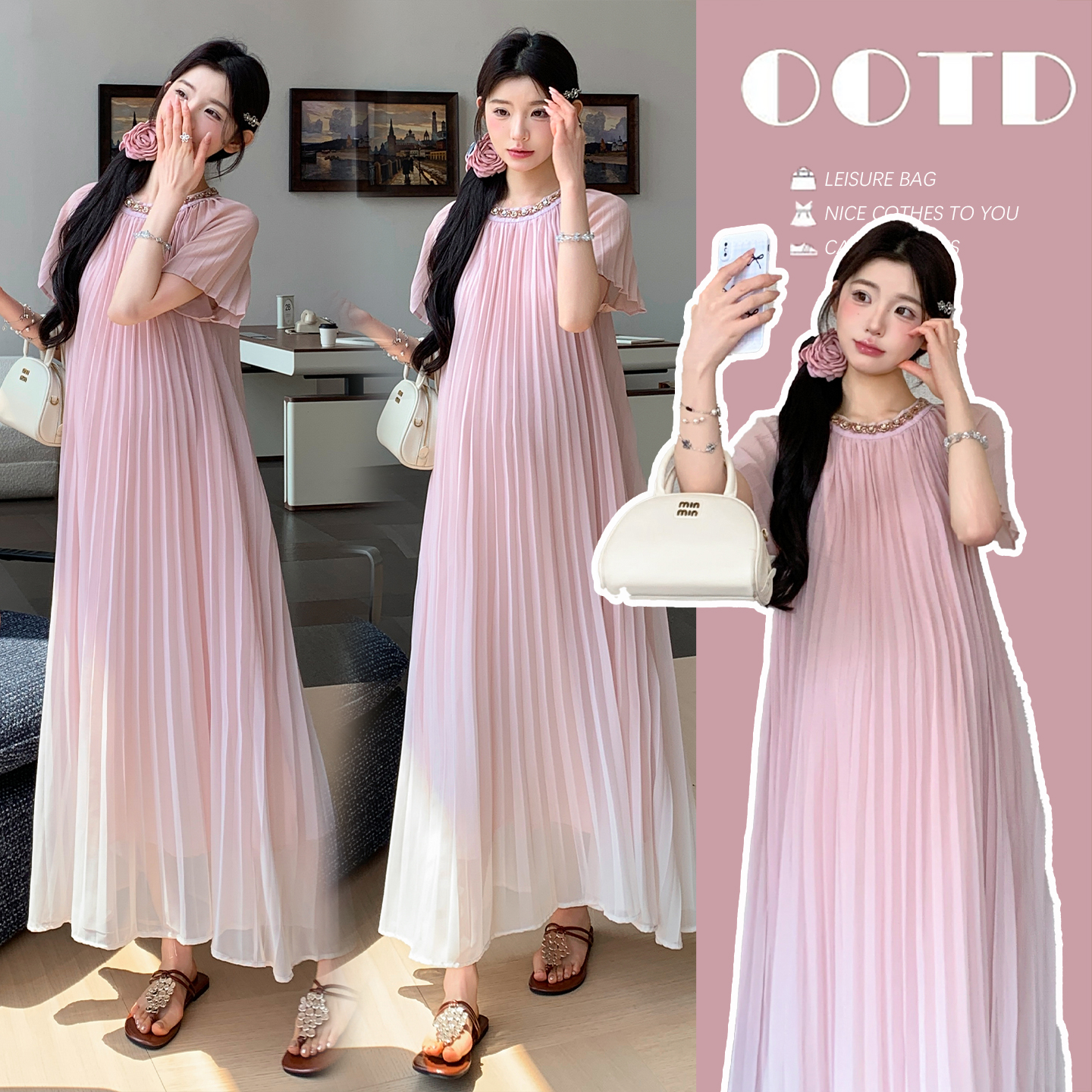 실사 지금 지금 여름 드레스 새로운 출산 착용 백퍼센트 그라데이션 우아한 요정 임산부 드레스