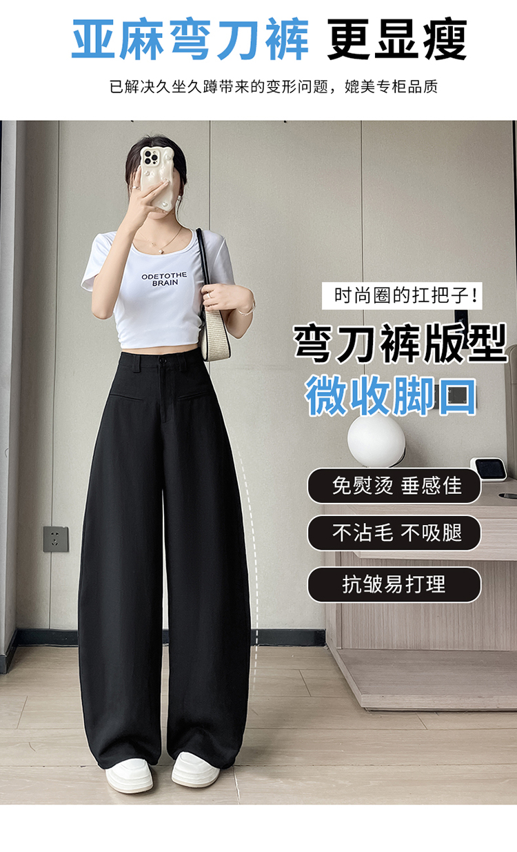 실사 2026 여름 새로운 주간 실크 아마 와이드 레그 팬츠 하이웨이스트 스트레이트 면 린넨 정장 바지 바닥 청소 바지 여성