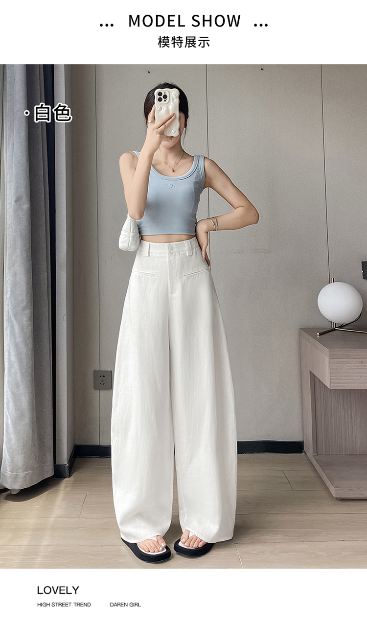 실사 2026 여름 새로운 주간 실크 아마 와이드 레그 팬츠 하이웨이스트 면 린넨 얇은 스타일 캐주얼 바닥 청소 바지 여성