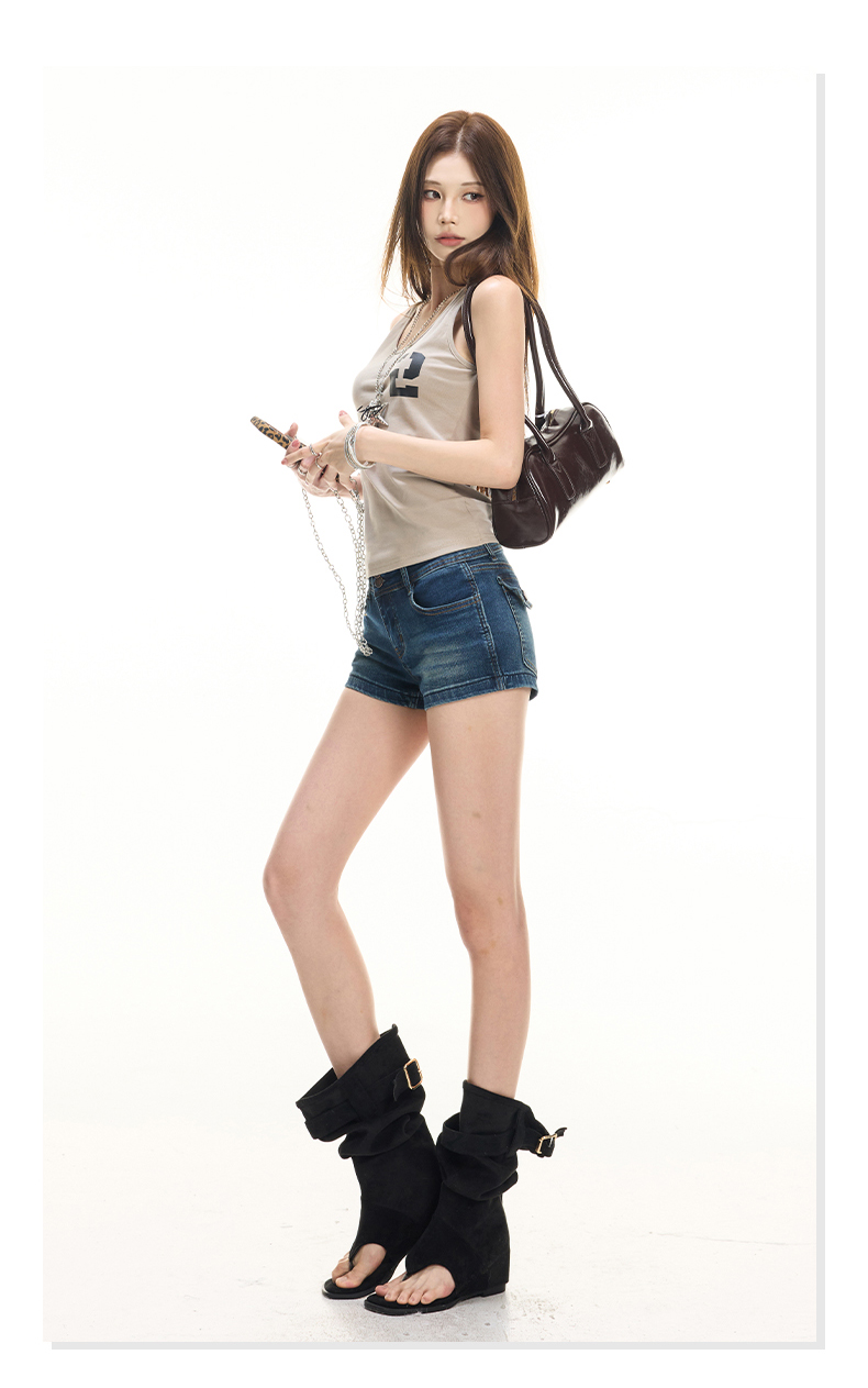 실사 2026 아메리칸 yk2 핫걸 핫 바지 데님 바지 허리 엉덩이 ~보다 다용도 한 마디 타이트 스커트 데님 반바지 여성